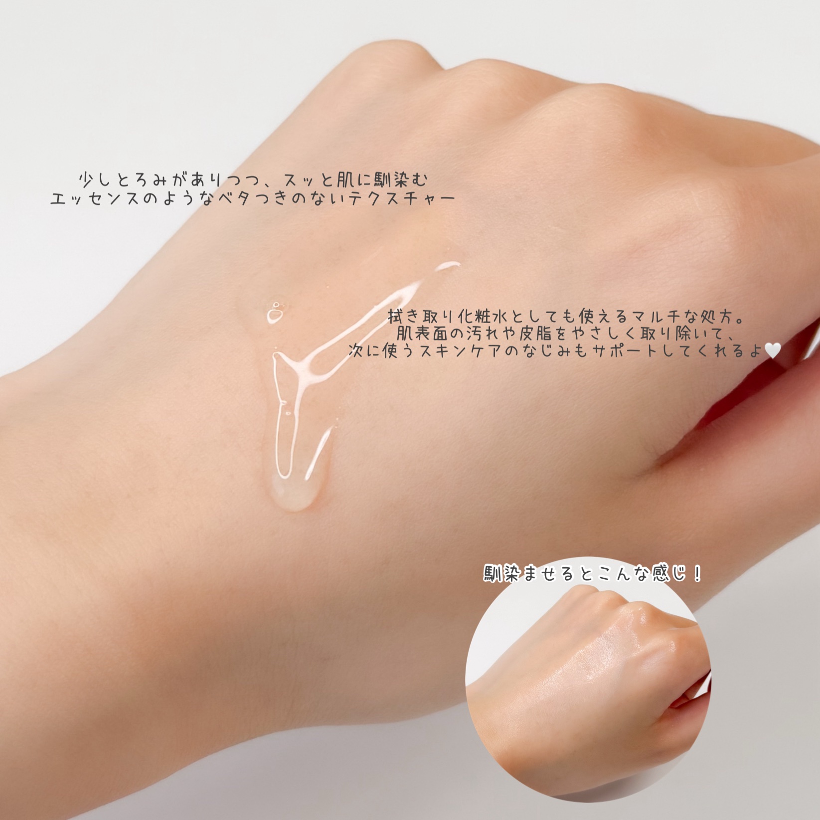 | テクスチャは若干とろみのある感じ。 肌にするするなじんでいく✨ | 詳細を見る | |