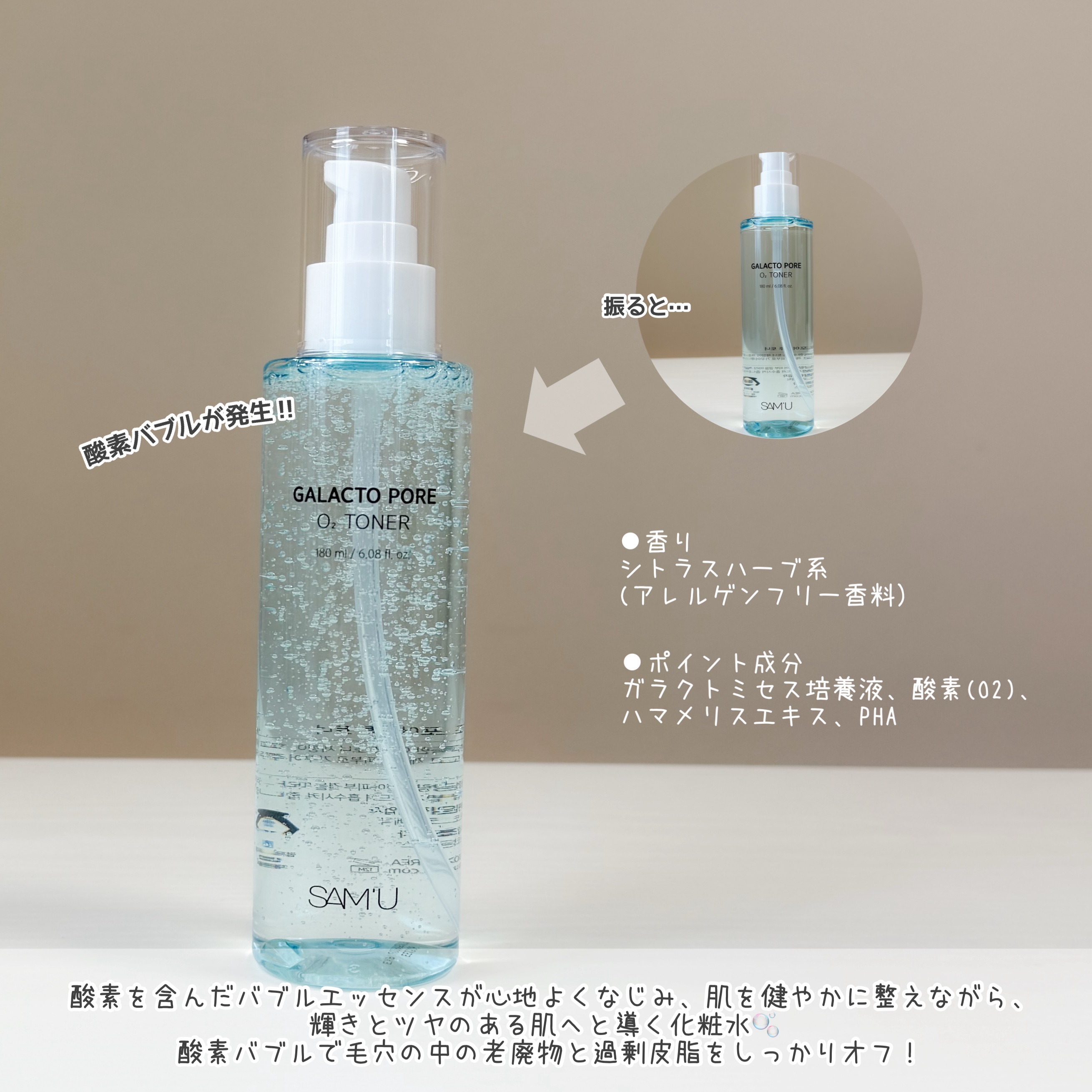 SAM'U@sam_u_jpガラクトポアオーツートナー振ると発生する酸素バブル🫧酸素バブルで毛穴汚れと過剰皮脂をオフ✨少しとろみがあるけどサラッとした肌馴染みの良いテクスチャ優しく毛穴ケアできる「洗顔レベルの化粧水」💗振るとバブルが発生して使...