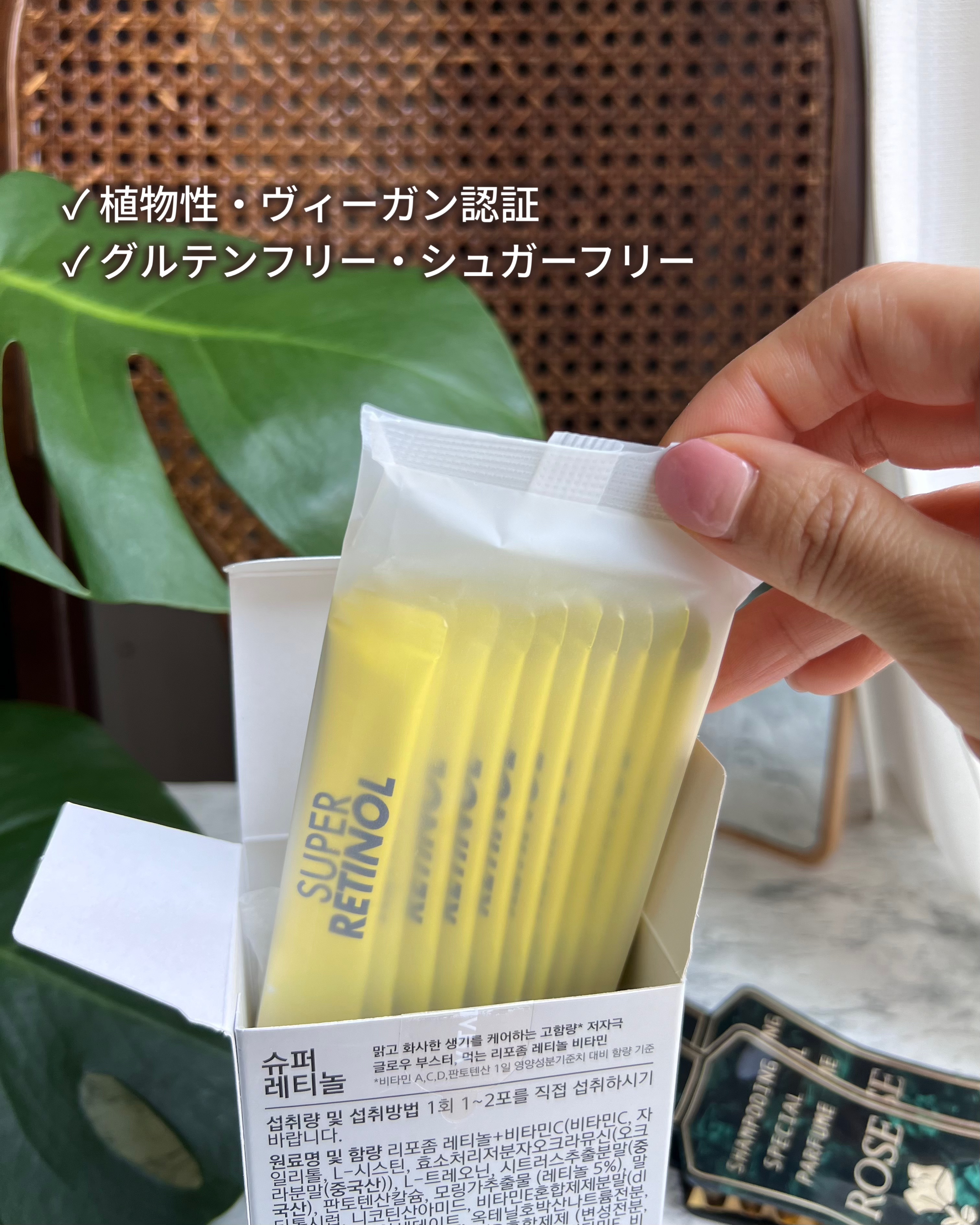 🤍🤍⋆⋆🤍皮膚専門科医とアモーレパシフィックが共同開発👀VITAL BEAUTIEバイタルビューティースーパーレチノール飲んでみたよ😍😍😍飲むレチノールって何!?って思って気になってたアイテム✨️粉質が繊細でサラッと飲める…!!!モリン...