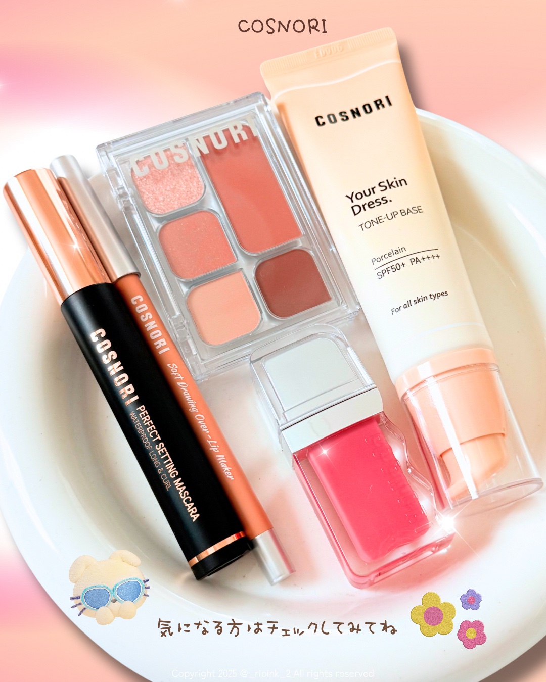 COSNORIコスメを使ってメイクしてみたよ💄✨使ったのはこれ👇🏻✷ユアースキンドレストーンアップベースSPF50+PA++++自然に馴染むベージュカラーのトーンアップ下地✷マイモーメントアイパレット(01MistyMute)夢幻的な雰囲気の...