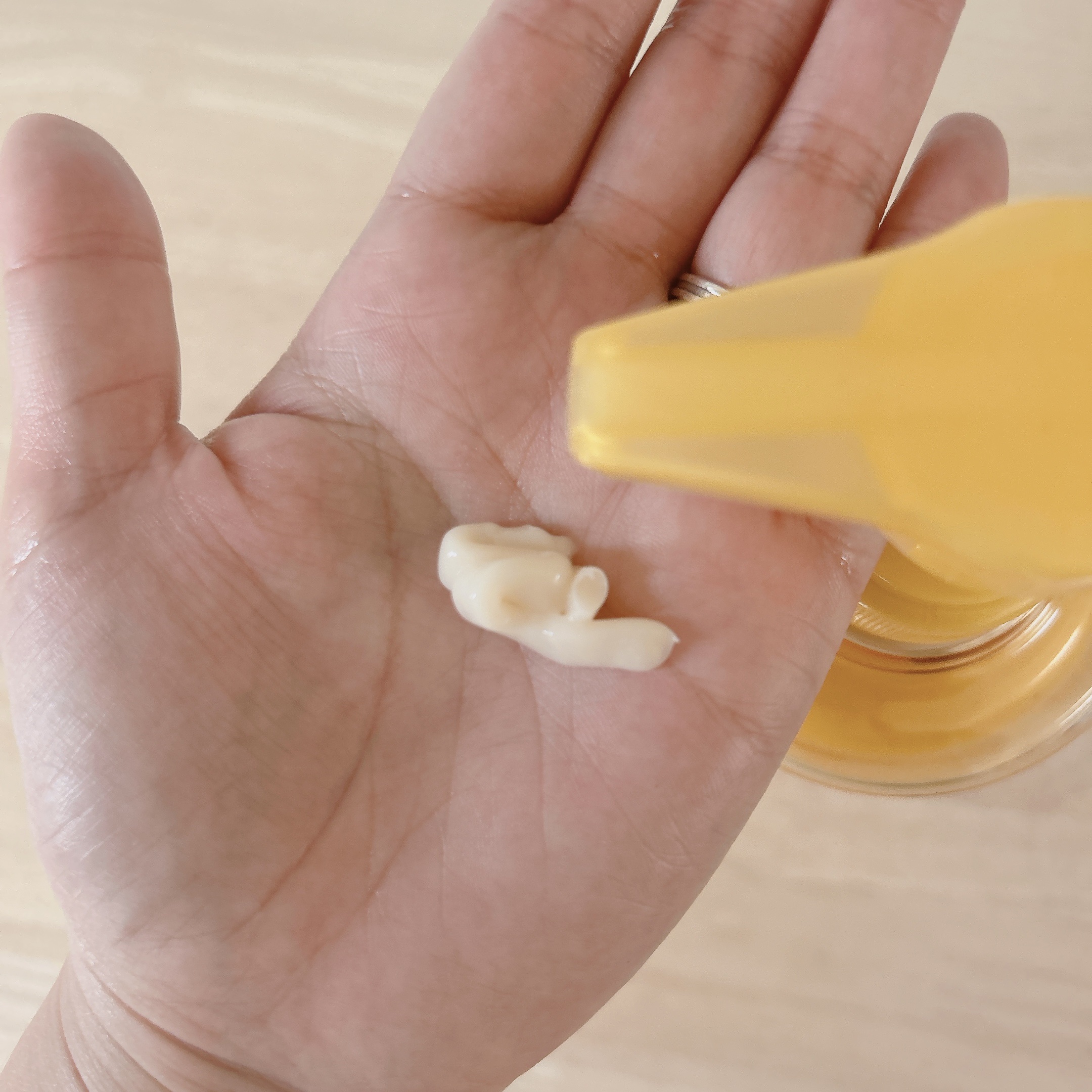 ジェルはさらっと塗れて塗りやすいです。 軽すぎず重たすぎずな使い心地☻ しっとりではあるけどしっとりしすぎずで 1個で十分なくらいです𓂃୨୧ もしかしたら乾燥しやすいこれからの季節はプラスに必要かもしれませんが 今のところなくて大丈夫でした◎ 疲れた夜にも使ってみましたが、 翌朝までしっとりしてくれました⋆︎* スパチュラや内蓋はありません𓂅 内蓋はないけどペラペラとした被せたものはありましたが⍤ 使い心地といい1000円以下の高コスパなので全然許せます← 笑