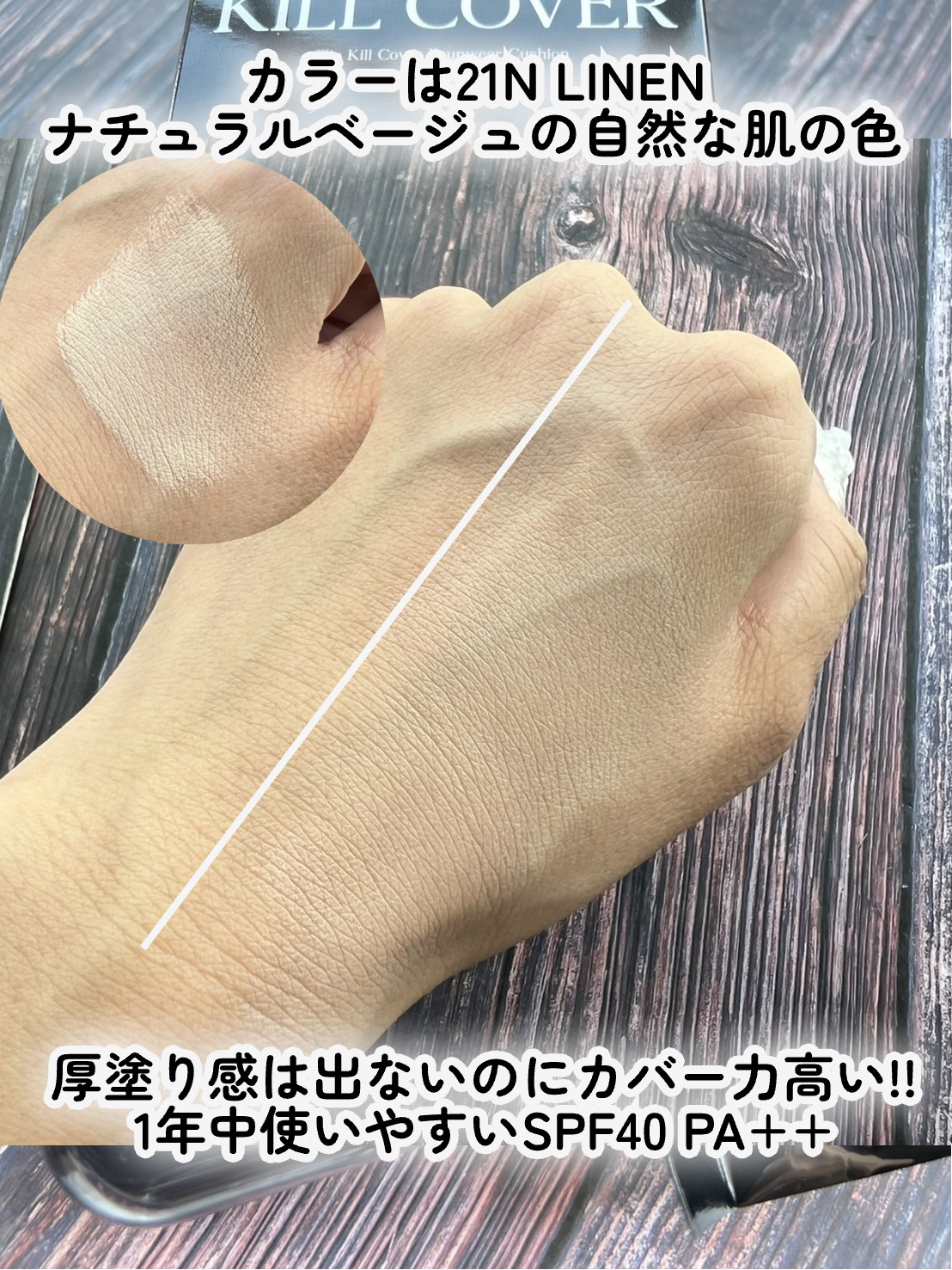 - SPF 40, PA++ 肌を柔らかく包み込むような塗り心地で、キメの整った肌を演出するキルカバークッション 紫外線から皮膚を保護。 #欠点カバー シミ・赤み・クマなどの気になる肌悩みを均一にカバーし、 厚塗り感の少ないなめらかな肌へ #くすみカバー ロングラスティング効果で、くすみにくく明るい肌印象に メイクしたての仕上がりを長時間キープ #毛穴カバー 肌をすこやかに保ち、キメを整えて毛穴が目立ちにくいうるおった肌へ 毛穴や肌の凹凸をカバーしながらセミマットな仕上がりへ 〈19C ライト (LIGHT)〉 ライトピンクベージュ 明るい肌色 〈19N ポーセリン (PORCELAIN)〉 ライトベージュ 明るい肌色 〈21C ランジェリー (LINGERIE)〉 ピンクベージュ 華やかな肌色 〈21N リネン (LINEN)〉 ナチュラルベージュ 自然な肌色 〈23N ジンジャー (GINGER)〉 ミディアムベージュ 健康的な肌色