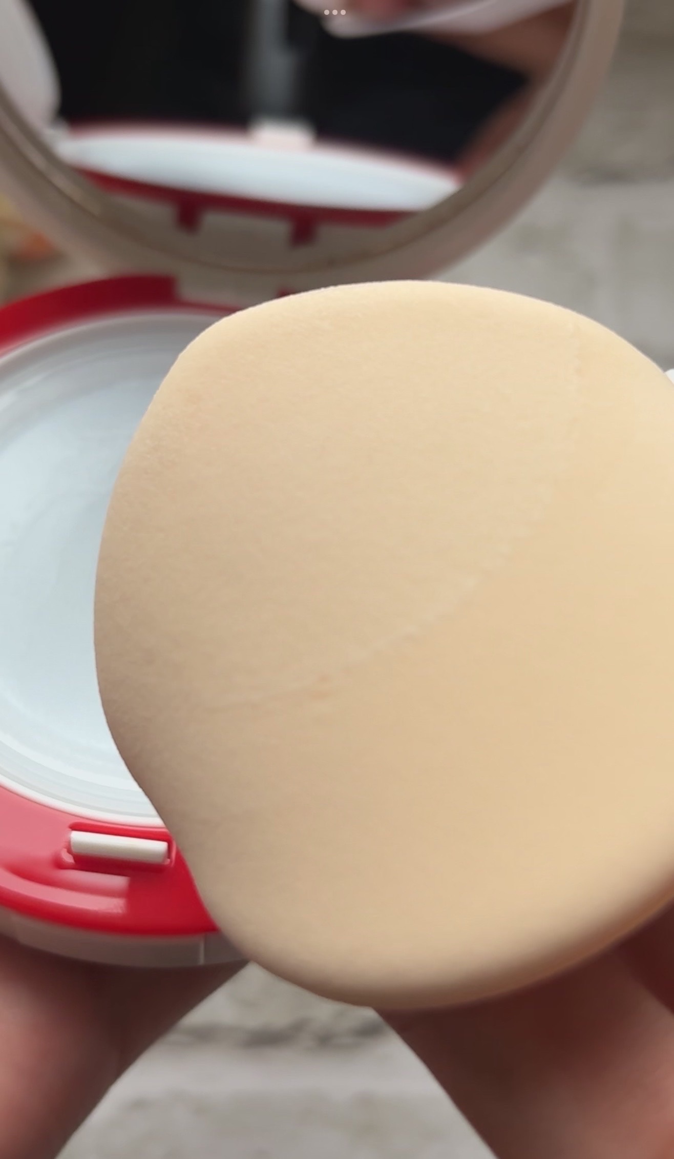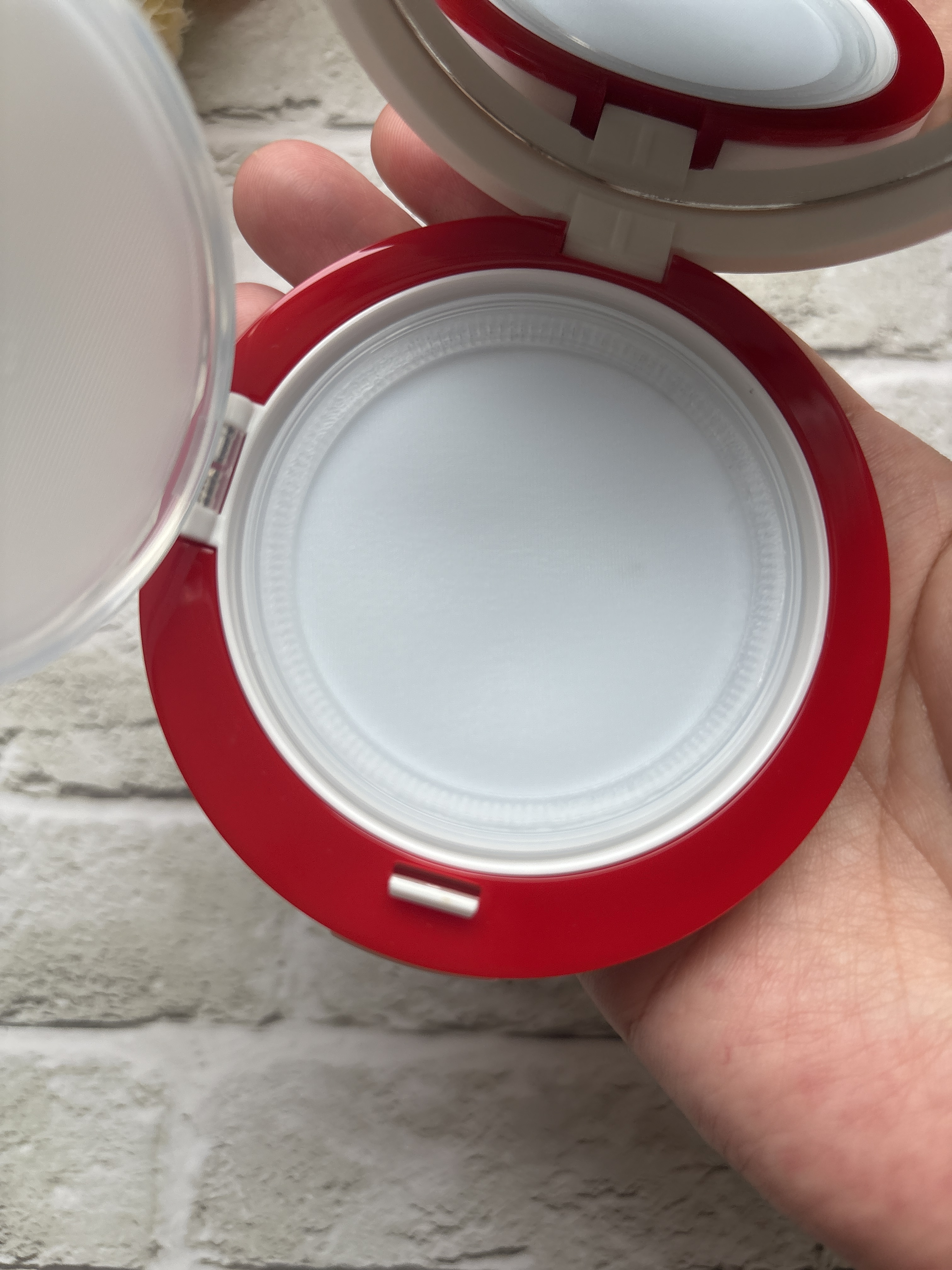ファンデーションのケースと中身が別なのでまずは組み立てるところから。スポンジはクッションファンデによくある、薄手のスポンジです。ケースについている鏡にはシールが貼ってあったのでとって・・・。こんな感じ。(スワイプしてみてね)スポンジを手に、フ...