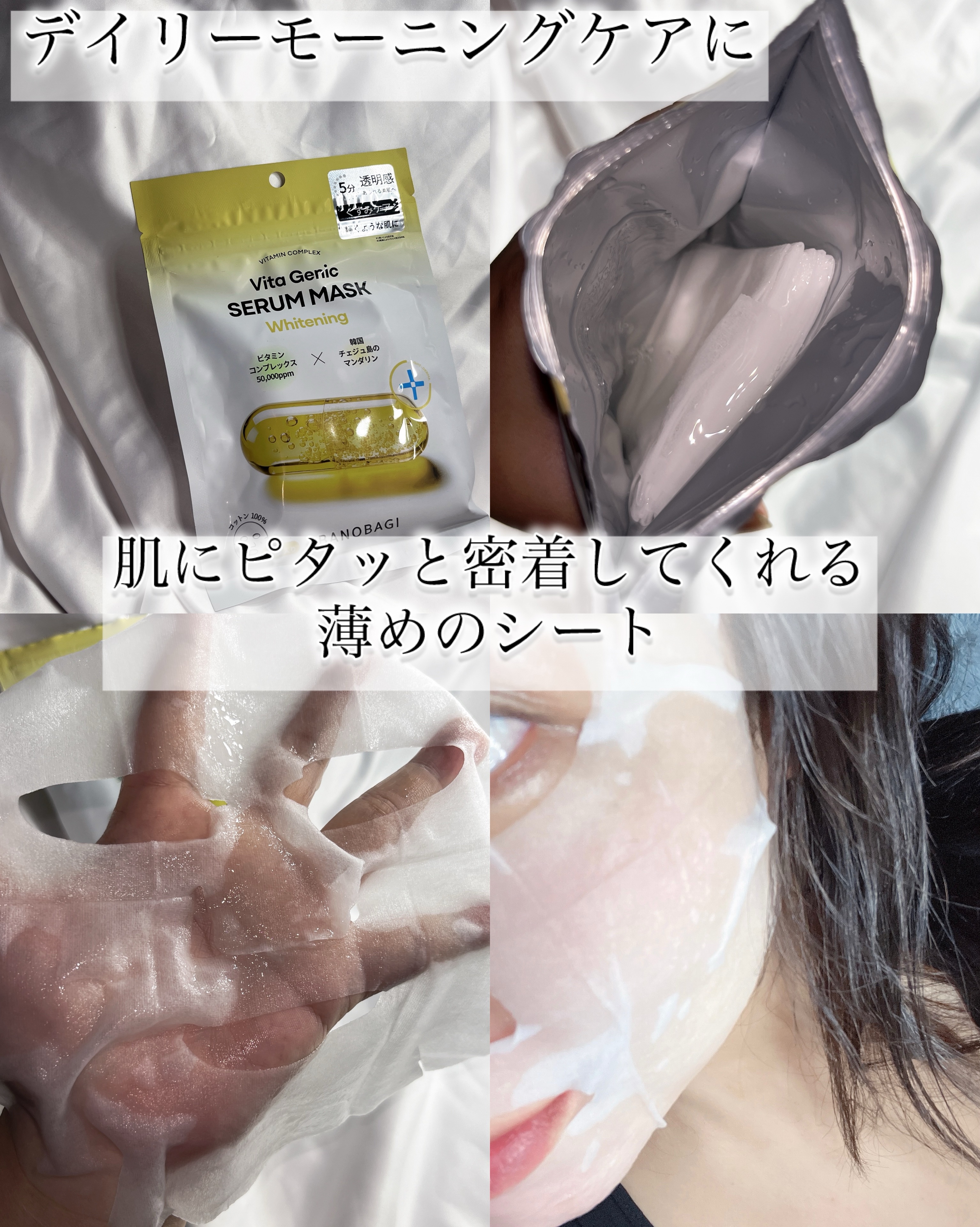 ドクターコスメBANOBAGIの 夏にぴったりなマスクパック3種類を試してみたよ🤍✔️ビタジェニックセラムマスクホワイトニング デイリーモーニングケアにおすすめ!軽やかなセラムテクスチャー!べたつかず爽やかなさっぱりな仕上がり✨ハルラボン(済...