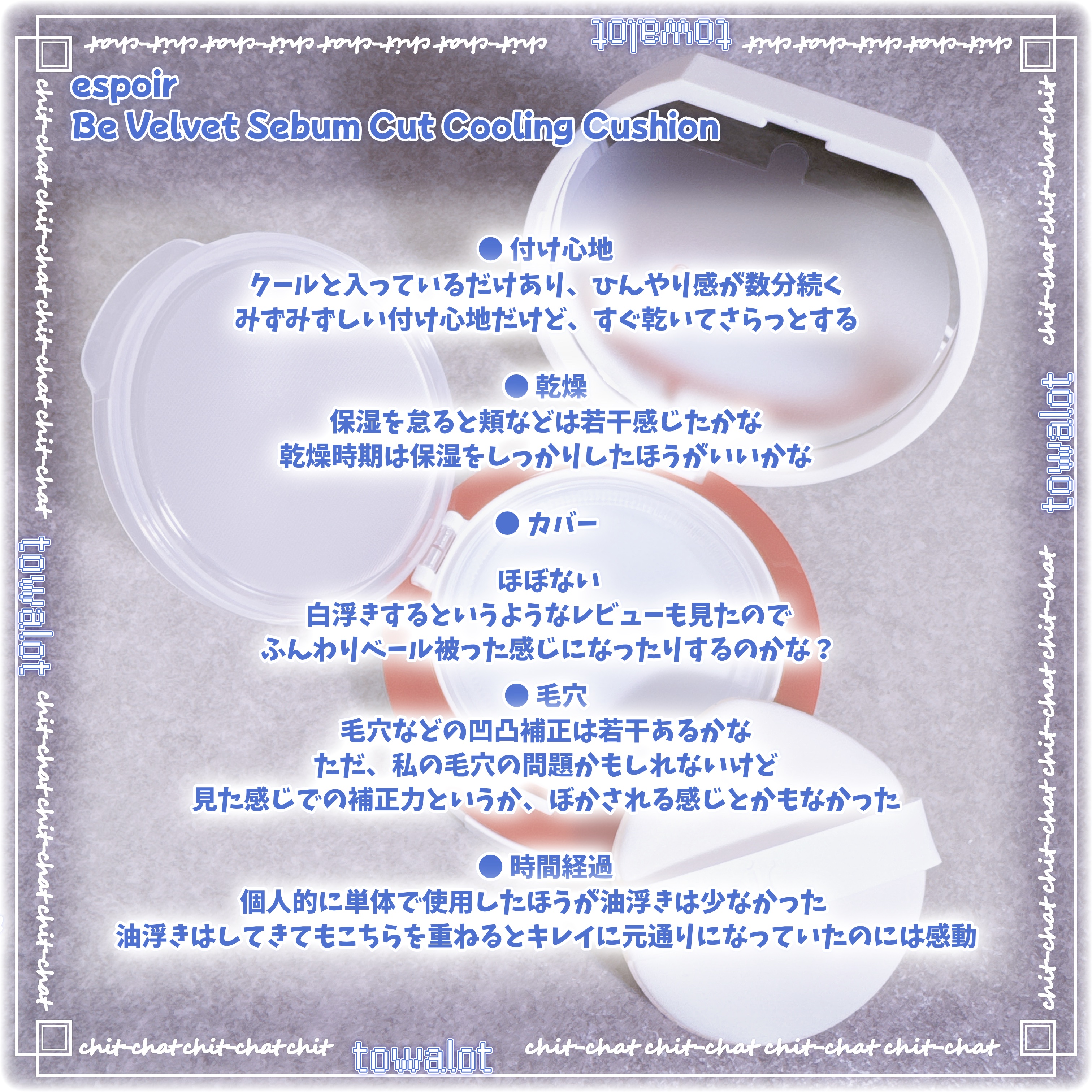 espoirBeVelvetSebumCutCoolingCushionシンプルな白パケにロゴがさりげなく入ってて、おしゃれなデザインのせた瞬間ひんやりして気持ちいいし、仕上がりはサラサラで快適に過ごせそう。(個人の感想です)#PR#エスポア...