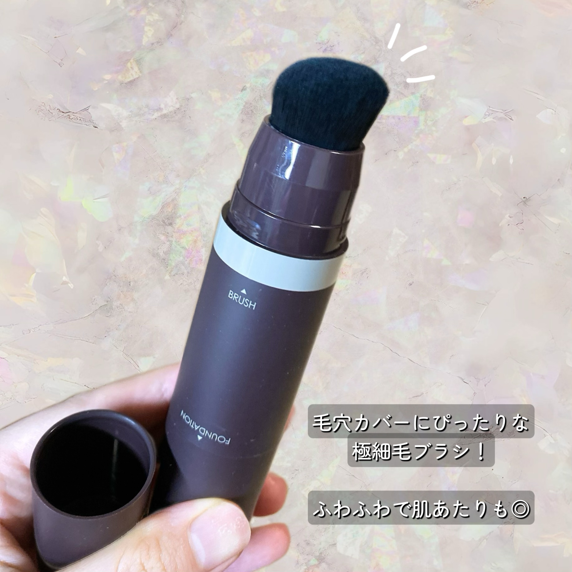 - ローション+BB クリーム 日焼け止め機能をすべて盛り込んだAllin One ファンデーション 極細毛ブラシ一体型で、湾曲した部分の毛穴までカバー ブランド初発売商品であり、ブランド内で人気No1商品