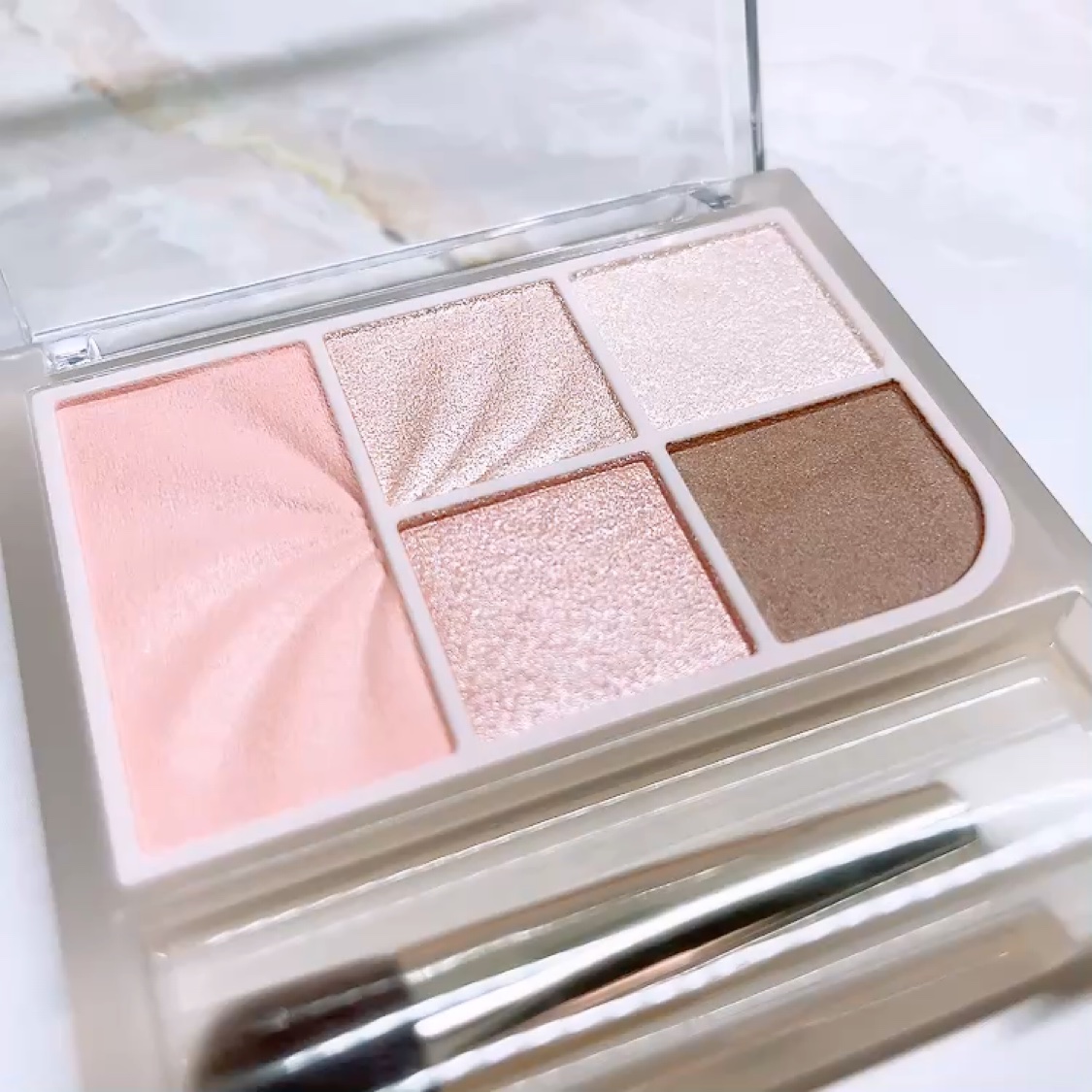 4つの異なる質感が楽しめる、多質感アイシャドウパレット!「透け感ベース・繊細パール・グリッター・マット」の4つの質感がひとつに入ったパレットです 〈抜け感ツヤ仕上げ〉 ツヤのある華やかさのある仕上がり グリッターのツヤ感が良かった☺️ 〈奥行きマット仕上げ〉 大人っぽい上品な仕上がり 落ちついた感じでお仕事メイクに◎
