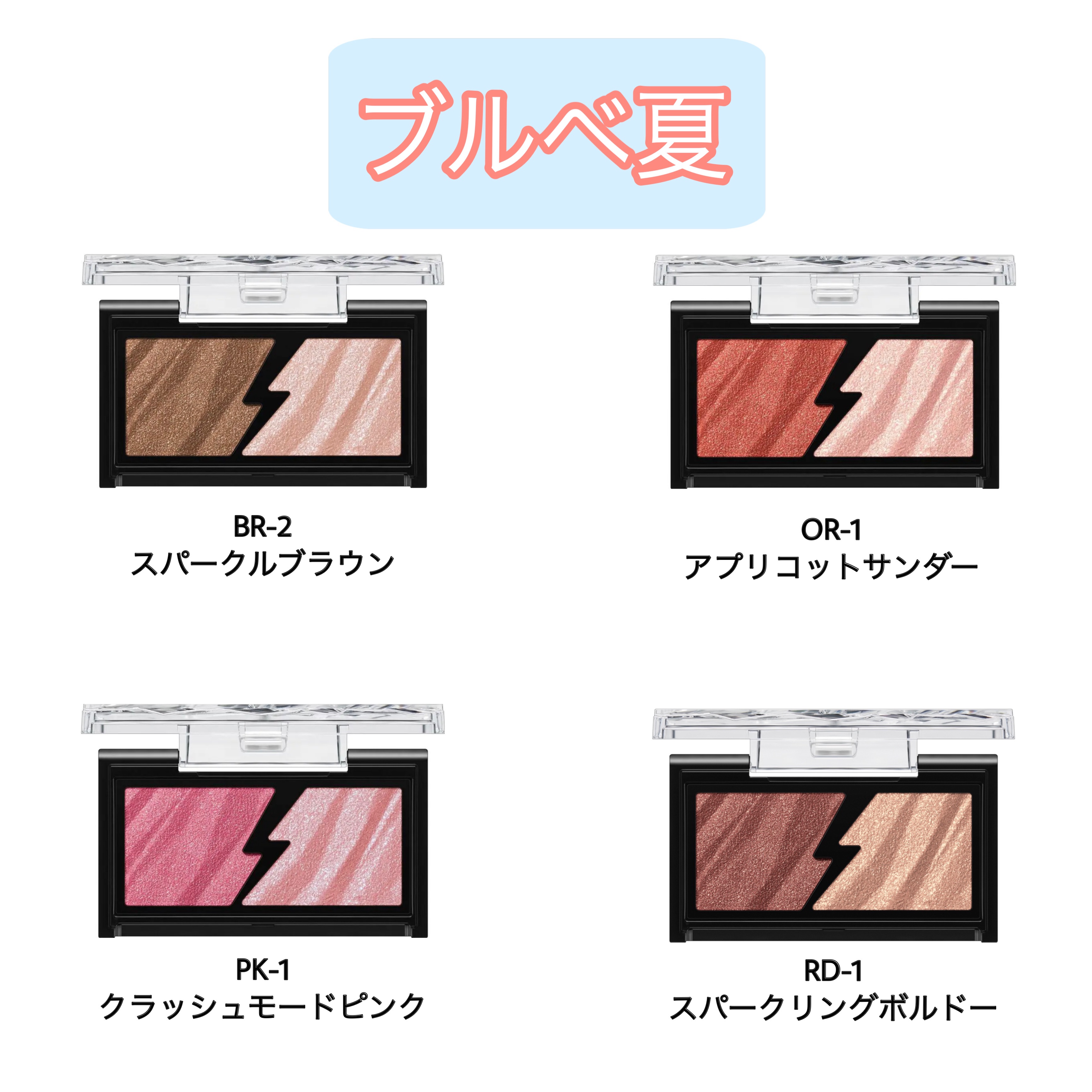 - 質感の違う2つの輝きで火花がクラッシュしたような発光感のある目元印象をつくるアイシャドウ。 まぶたにピタッと密着して、大粒ラメも落ちにくい処方設計。 繊細なカラーパールがきらめくエレクトリカルカラーと存在感のある大粒グリッターでまぶしい輝きを演出するフラッシュグリッターの2つの質感を掛け合わせて、輝き自由自在。 目元以外にも頬や鼻筋のハイライトに使える。
