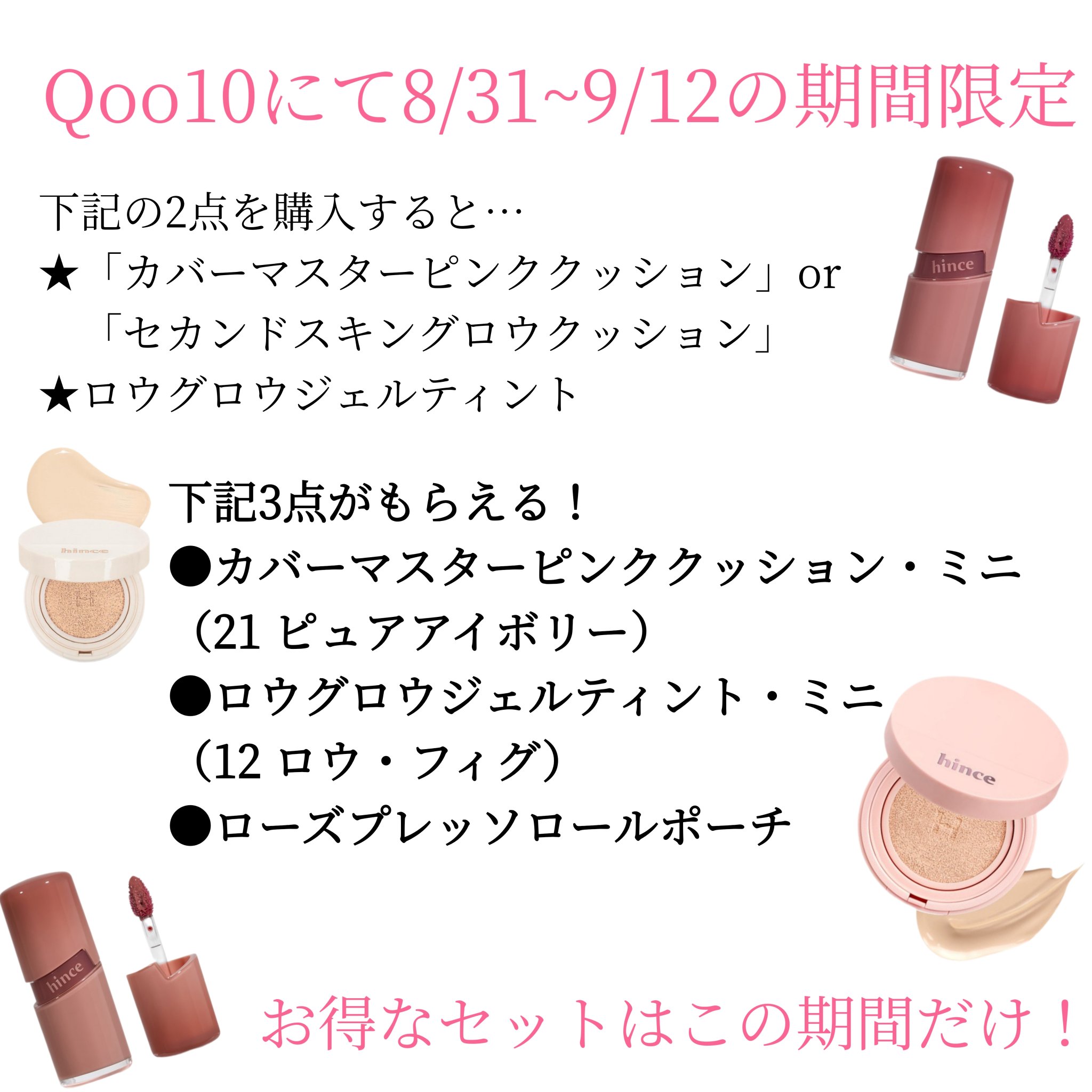 『hinceリフィルつきカバークッションファンデ&メガリップセット』hinceカバーマスターピンククッション(1+1リフィル贈呈)Qoo10価格 2816円(税込)hinceメガリップセットQoo10価格 2216円(税込)気になった方は保存...
