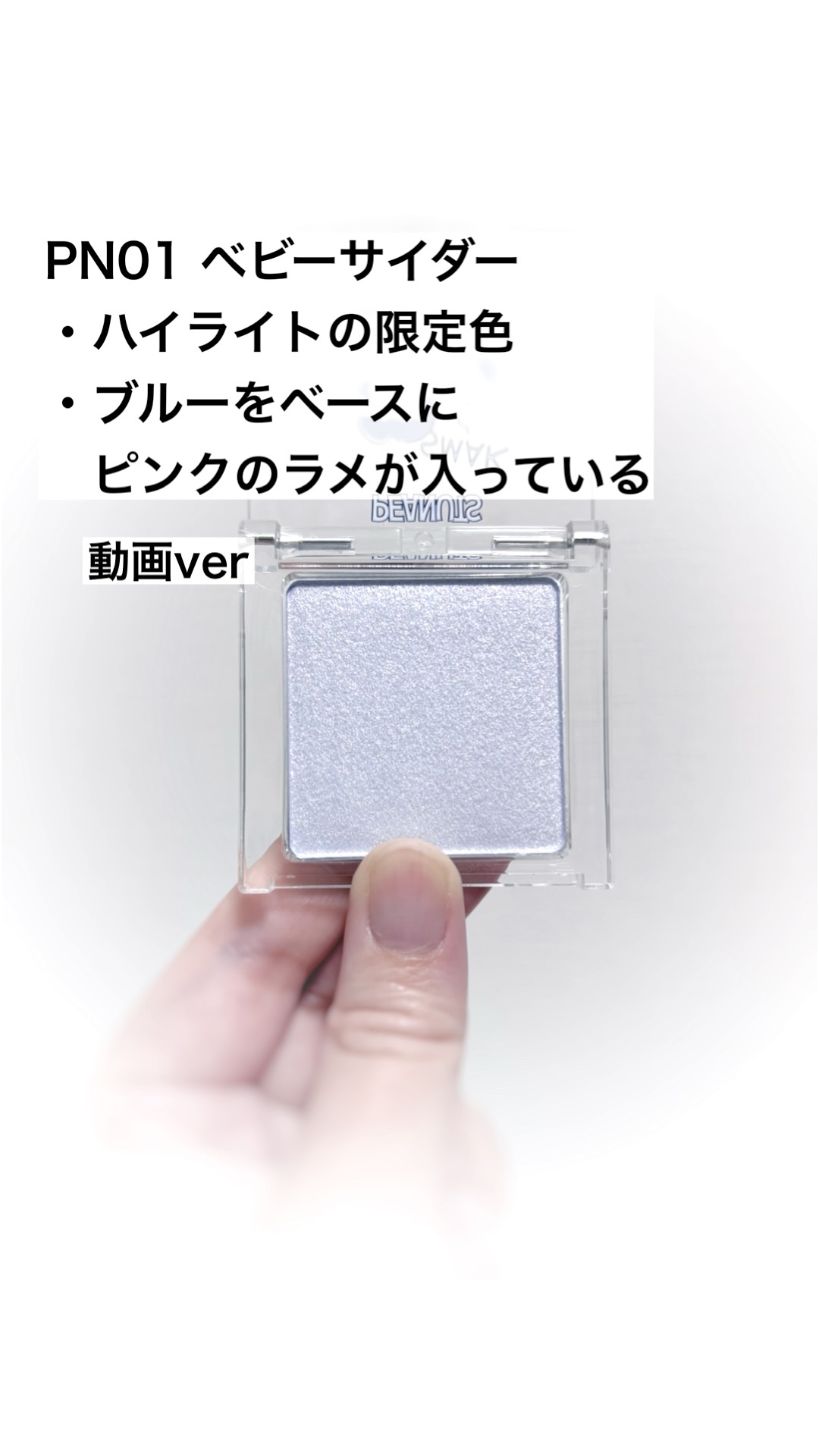 - <01 スノーベージュ> タルク、合成フルオロフロゴパイト、ジフェニルシロキシフェニルトリメチコン、水添ポリデセン、アルミナ、(イソステアリン酸ポリグリセリル-2/ダイマージリノール酸)コポリマー、ジメチコン、硫酸Ba、ヒアルロン酸Na、セラミドNP、トコフェロール、ジステアリン酸Al、クロルフェネシン、デヒドロ酢酸Na、ステアリン酸Mg、(+/-)シリカ、マイカ、酸化チタン、酸化鉄、グンジョウ <02 サクラスノー> タルク、合成フルオロフロゴパイト、ジフェニルシロキシフェニルトリメチコン、水添ポリデセン、アルミナ、(イソステアリン酸ポリグリセリル-2/ダイマージリノール酸)コポリマー、ジメチコン、硫酸Ba、ヒアルロン酸Na、セラミドNP、トコフェロール、ジステアリン酸Al、クロルフェネシン、デヒドロ酢酸Na、ステアリン酸Mg、(+/-)シリカ、マイカ、酸化チタン、酸化鉄、グンジョウ <03 スハダベージュ> タルク、合成フルオロフロゴパイト、ジフェニルシロキシフェニルトリメチコン、水添ポリデセン、アルミナ、(イソステアリン酸ポリグリセリル-2/ダイマージリノール酸)コポリマー、ジメチコン、硫酸Ba、ジステアリン酸Al、クロルフェネシン、デヒドロ酢酸Na、ステアリン酸Mg、トコフェロール、セラミドNP、水酸化Al、ヒアルロン酸、(+/-)シリカ、マイカ、酸化チタン、酸化鉄、グンジョウ <PN01 ベビーサイダー(ピーナッツコラボ)(限定) > アルミナ、タルク、ジフェニルシロキシフェニルトリメチコン、水添ポリデセン、合成フルオロフロゴパイト、(イソステアリン酸ポリグリセリル-2/ダイマージリノール酸)コポリマー、ジメチコン、硫酸Ba、シリカ、ジステアリン酸Al、クロルフェネシン、デヒドロ酢酸Na、ステアリン酸Mg、トコフェロール、セラミドNP、水酸化Al、ヒアルロン酸Na、酸化チタン、マイカ、ホウケイ酸(Ca/Al)、酸化スズ、コンジョウ、グンジョウ、酸化鉄、青404、赤226 <SP01 ミミピンク(限定)> タルク、合成フルオロフロゴパイト、ジフェニルシロキシフェニルトリメチコン、水添ポリデセン、アルミナ、(イソステアリン酸ポリグリセリル-2/ダイマージリノール酸)コポリマー、ジメチコン、硫酸Ba、ジステアリン酸Al、デヒドロ酢酸Na、ステアリン酸Mg、トコフェロール、セラミドNP、水酸化Al、ヒアルロン酸Na、シリカ、マイカ、酸化チタン、ホウケイ酸(Ca/Al)、グンジョウ、赤226、酸化鉄、酸化スズ