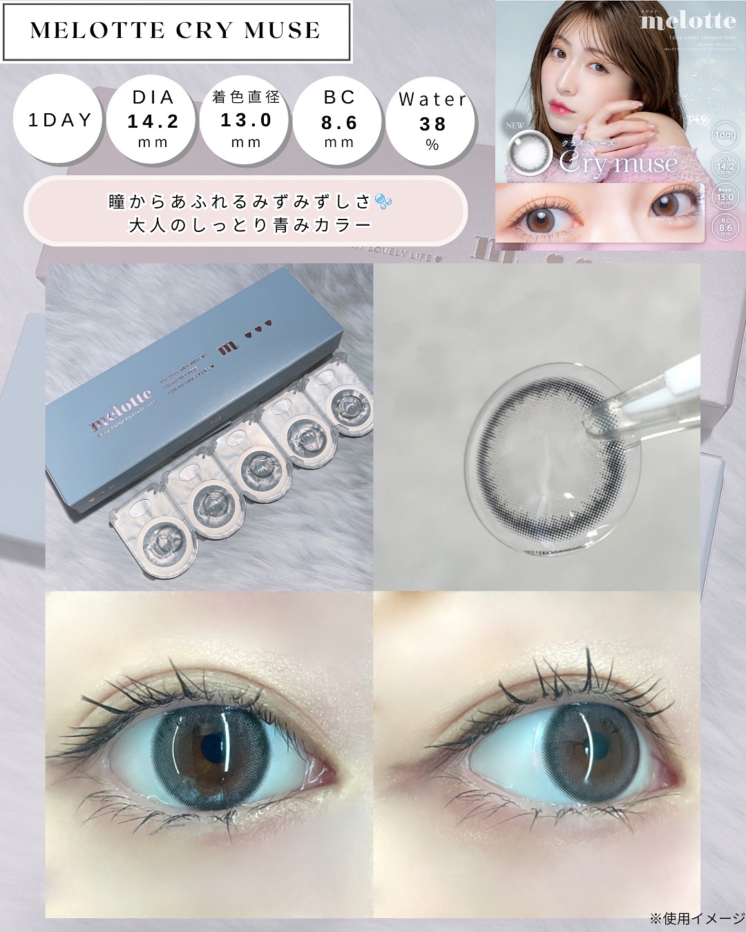 〖melotte待望の新色レンズ!〗\大人も使いやすいナチュラル盛り!/❤︎melotte✓DIA14.2mm✓BC8.6mm✓着色直径13.0mm✓含水率38%✓使用期限1day吉田朱里さんプロ...