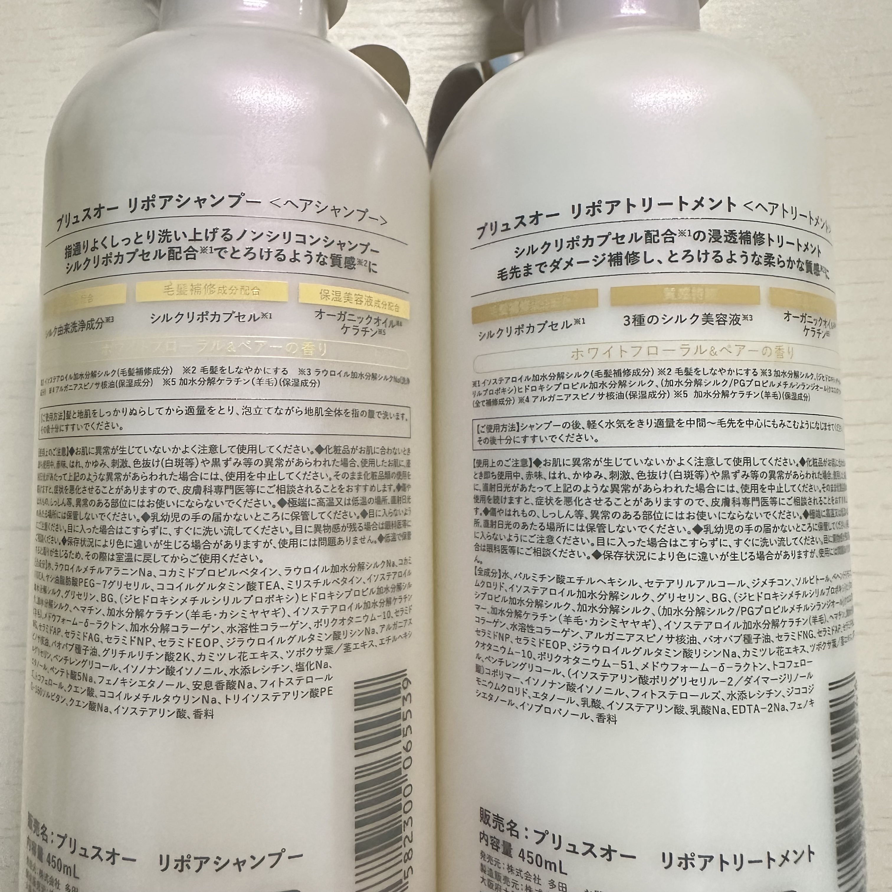 ************プリュスオーリポアシャンプー/リポアトリートメントプリュスオーからダメージ補修シリーズが新登場🌟毛髪補修成分として、シルクリポカプセル*配合で、とろけるような質感**に。シャンプーはとろみがとっても強い!2プッシュくら...