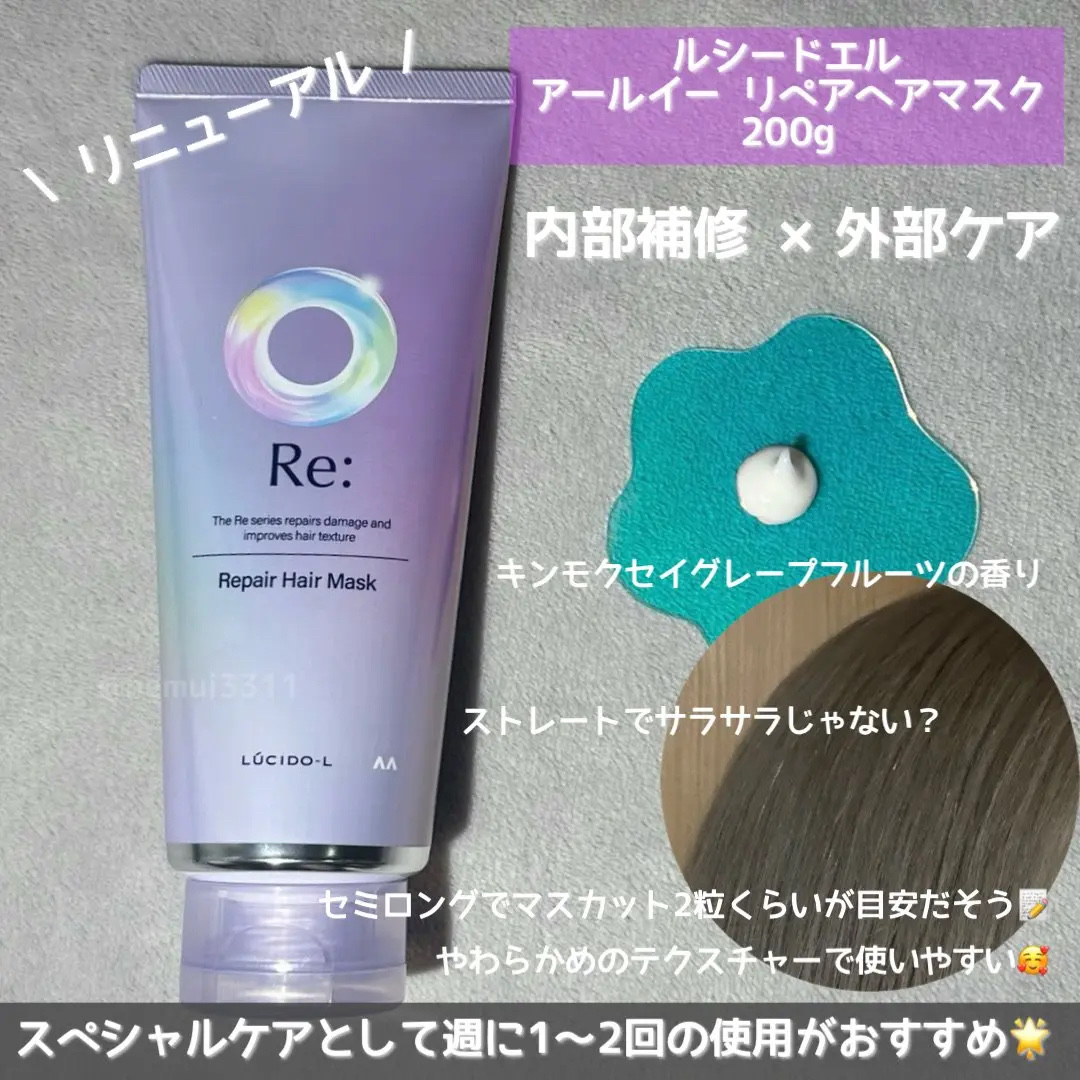 ルシードエルさまからいただきました。ルシードエルアールイーリペアヘアマスクルシードエルの質感再整シリーズがRe:(アールイー)シリーズとしてリニューアル新発売✨髪を内外から補修する「再整美容」を提案!アールイーリペアヘアマスクは酸熱ケア成分「...