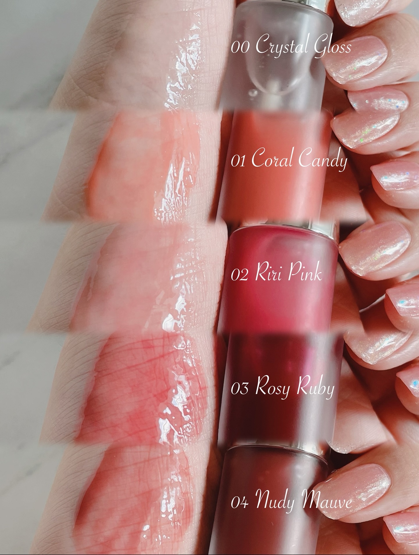 メイクの主役になる鮮やかなカラーと、普段使いもしやすいおしゃれカラーが勢揃い✨ プランパー効果でちゅるっとジューシーな唇になれました♪ 透け感がおしゃれで単体でも綺麗に発色しますが、マットリップの上に重ねると「タンフル(粘膜)リップ」の完成です!