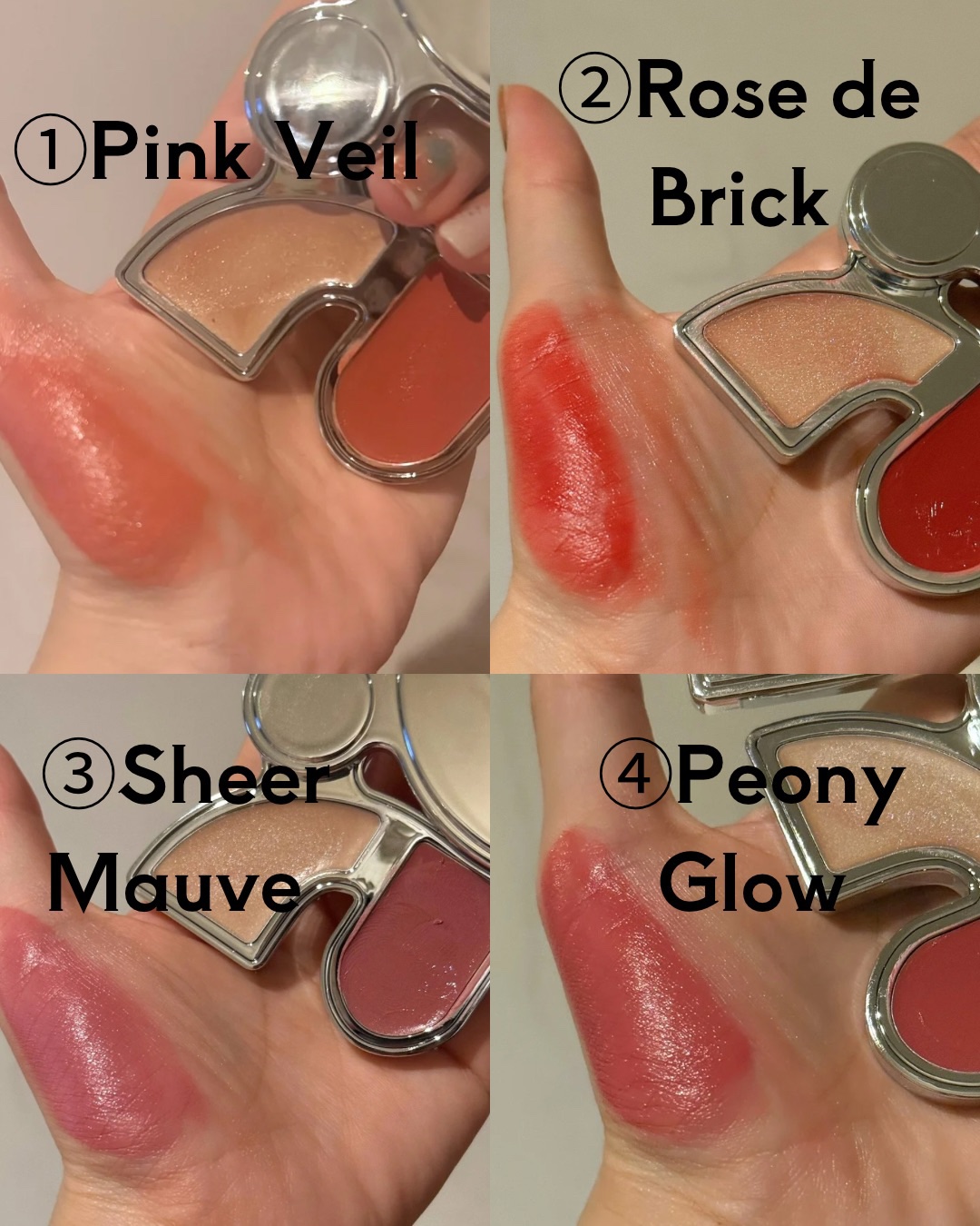 Visée「レイヤードフルリチーク」全色レビュー‼️さっそく使ってて褒められました🩷右側のハイライトが高発色でとってもかわいいです。シルバーに偏光するので、ブルベさんでもブラウンやオレンジにチャレンジできるのでは🧡と思いました。わたしは1st...