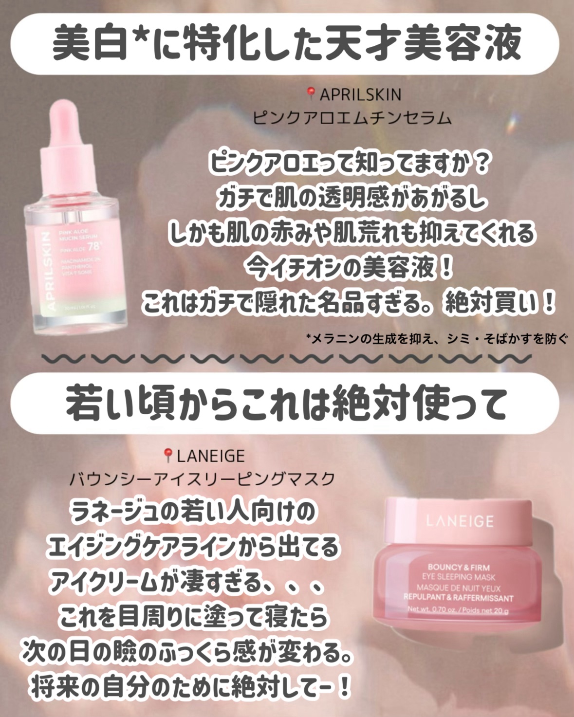 ナンバーズインってとても人気ですよね! 1番〜9番ってめっちゃ番号があるんだけど何が自分に合ってるか分からないですよね... ドラッグストアで結構置いてるので、買う時にどれがいいか悩んだ時の参考にしてみてね🫶 絶対に老けない肌作り! ◻️-10歳若返り老けない肌に🇰🇷 ◻️ノーファンデで褒められるすっぴん美人に✨