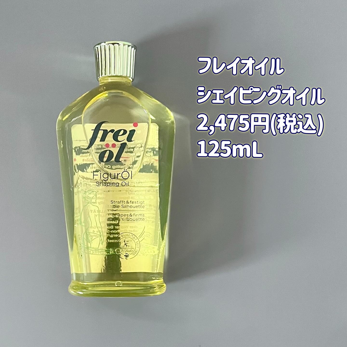 freioil/ShapingOil125mlフレイオイル/シェイピングオイルとにかくオイルも容器も軽いです(*^^*)写真だと重厚感ありそうに見えなくもないのですが、軽くて良かったです(*^^*)肝心のオイルは、一瞬で肌に馴染んでサラサラに...