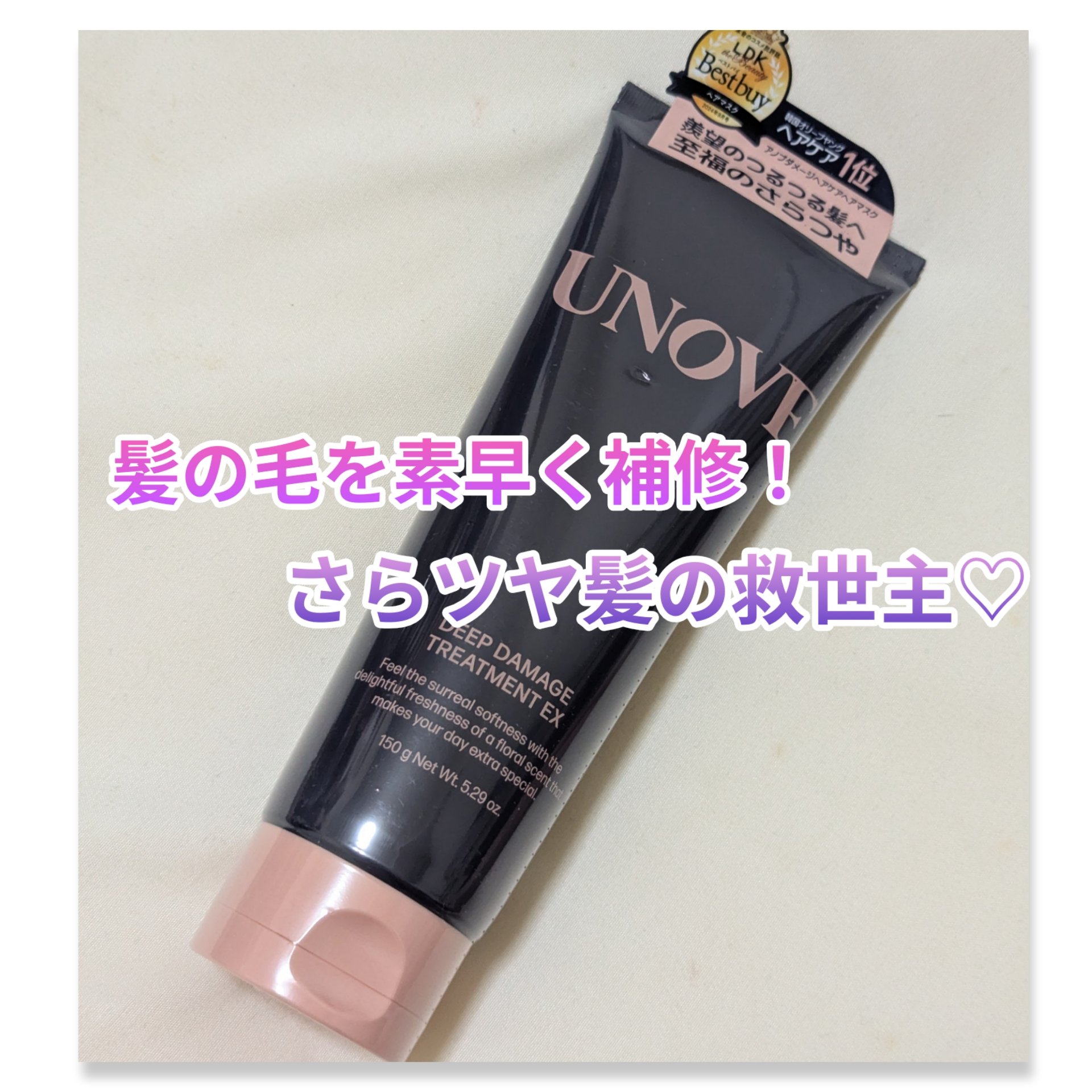 UNOVEディープダメージトリートメントEXフレッシュフローラルムスクの香り〜商品説明〜洗い流すタイプのヘアトリートメントケラチンーPFが30,000ppm配合されており、髪の毛を素早く補修させるのに役に立つサラツヤにこだわる!パーマ、カラー...