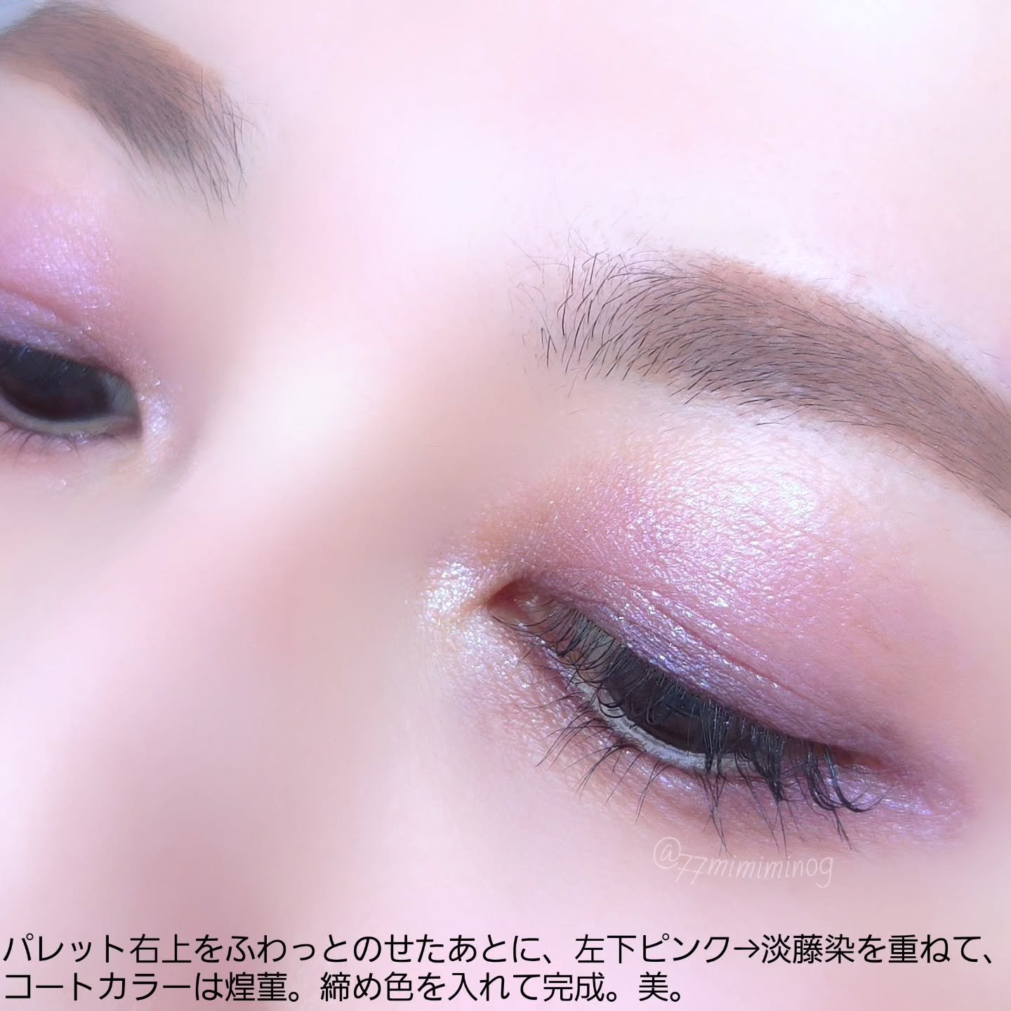 ベースに仕込むことで、パレットのカラーたちを引き立ててくれて発色がきれいに出る…!感動♡ 私の瞼ではピンクみが強めに出るんだけど、そのおかげでコートカラーのラメと締め色が映えて美しい🥹🩷 これ、136のパレットにも仕込んでみたい!!