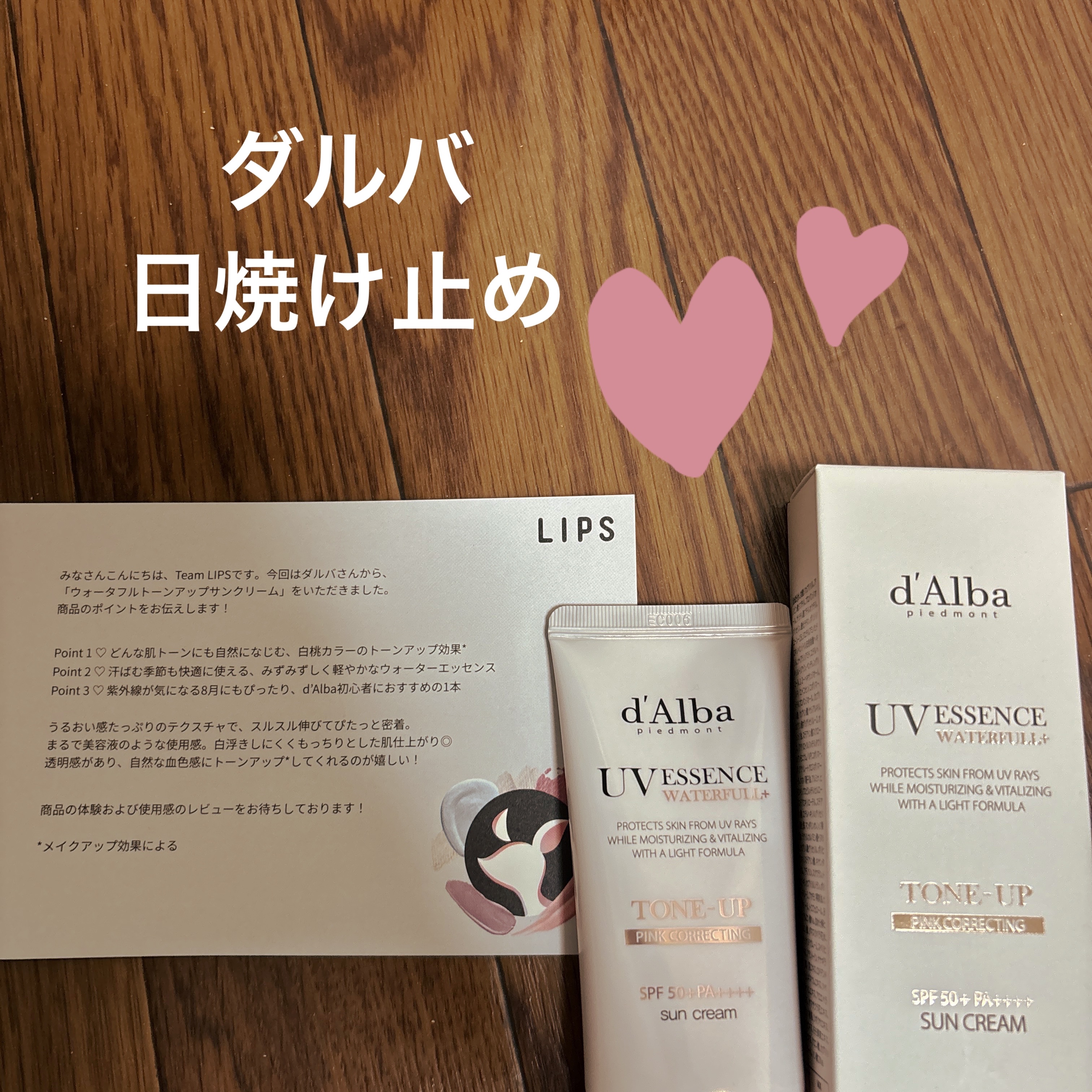 うれしいぐらいよい感じで好き#PR#ダルバ#LIPSプレゼントダルバウォータフルトーンアップサンクリーム○ほのかな柑橘系の香りで爽やか○伸び良し○みすみすしい使用感○つけ心地好き○程よいつや感○自然に※トーンアップできる白桃色もお気に入りリピ...