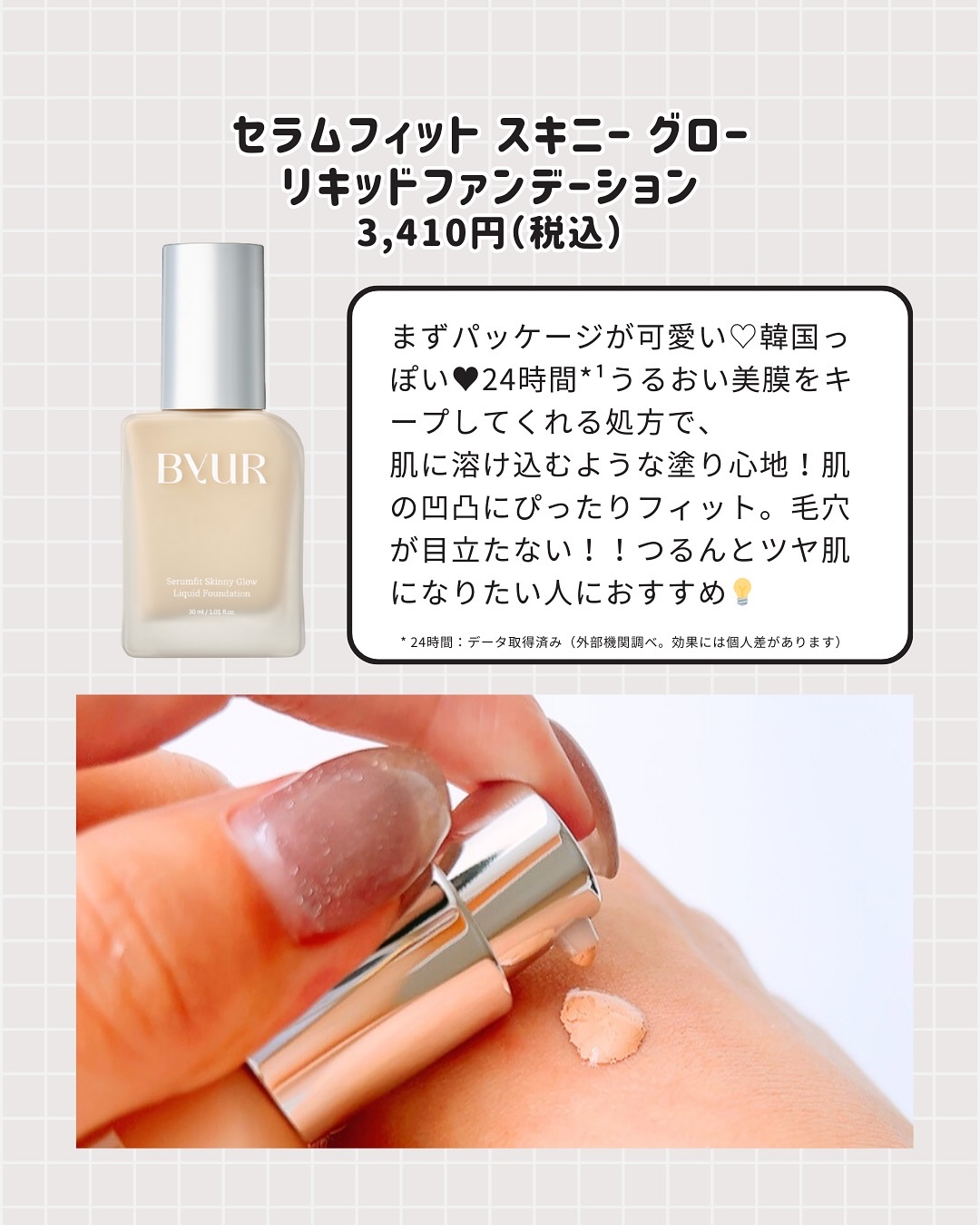 𝐁𝐲𝐔𝐑初のリキッドファンデーションが新発売✧˙⁎⋆肌の凹凸にぴったりフィット24時間*うるおい美膜キープ.ᐟ.ᐟ毛穴を目立たせずつるッうるツヤ肌に*✦࣭۟⊹*メイクアップ効果による*24時間:データ取得済み(外部機関調べ。効果には個人差が...