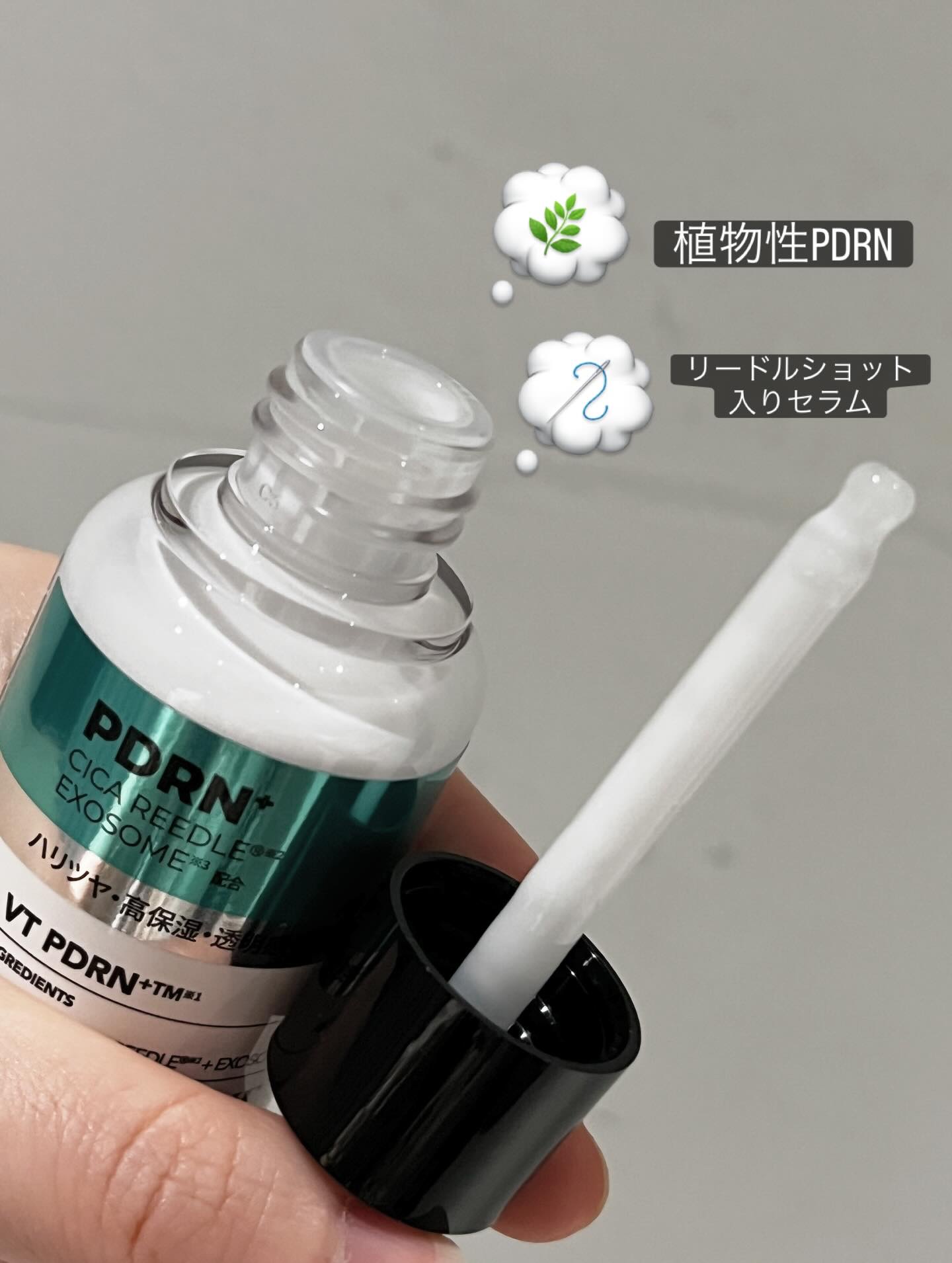 VTリードルSPDRN+セラム肌荒れ・ハリツヤ高麗人参由来の植物性PDRN×リードルショット化粧水後に使用するよ白色でとろみがかっているテクスチャーとろみがあるから多少は浸透しにくいけど保湿力満足!PDRNカプセルクリーム100ゆらぎ・ハリツ...