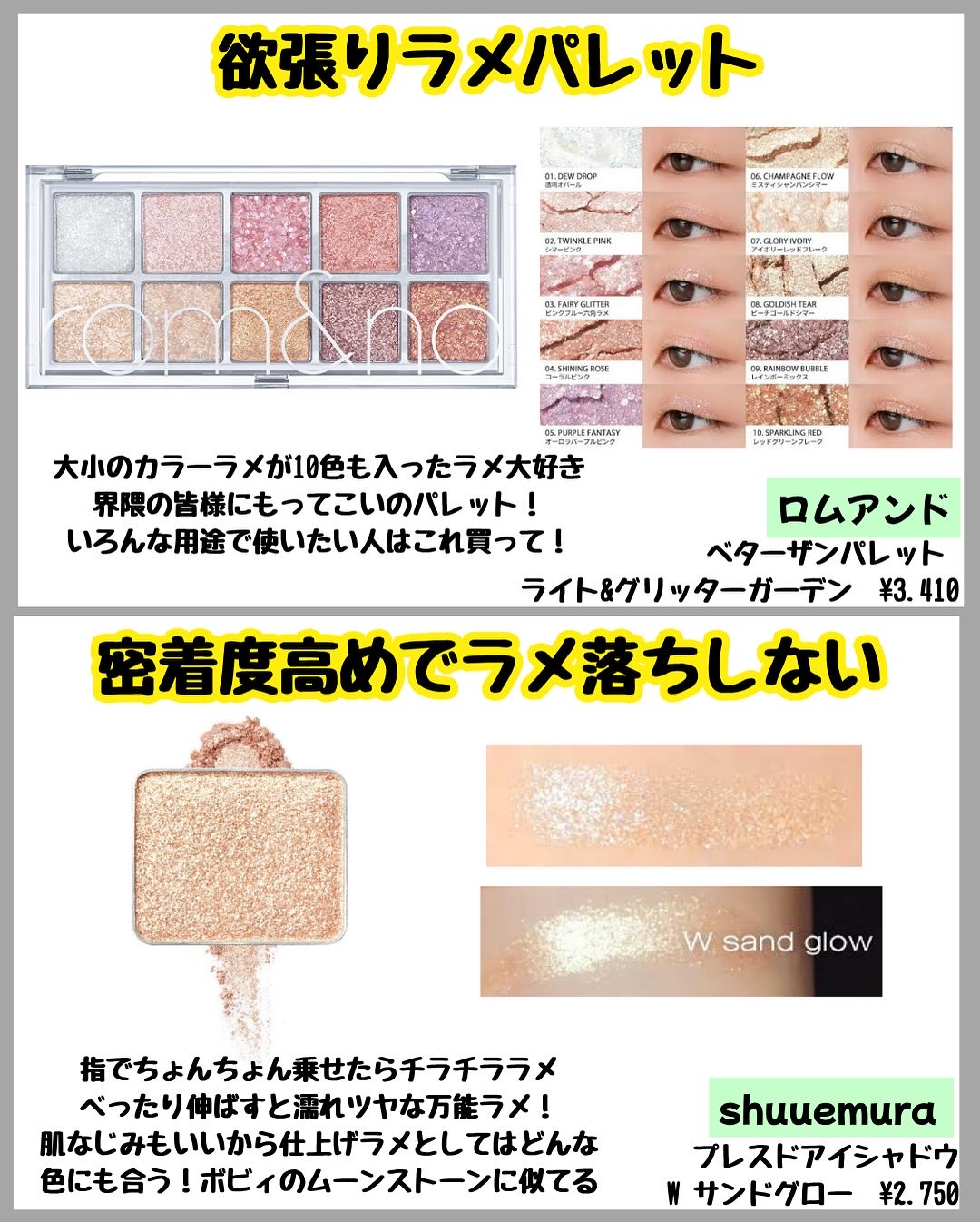 \✨【キラキララメアイシャドウ】✨/こんばんは🐰なぎです!↓そのほかの投稿を見るはこちら↓@nagicosme今回は私のイチオシ、いや激推しのラメアイシャドウをまとめたよ🧸ラメを愛して30年、私ほどラメが好きな人いる?っていうぐらいラメが好き...