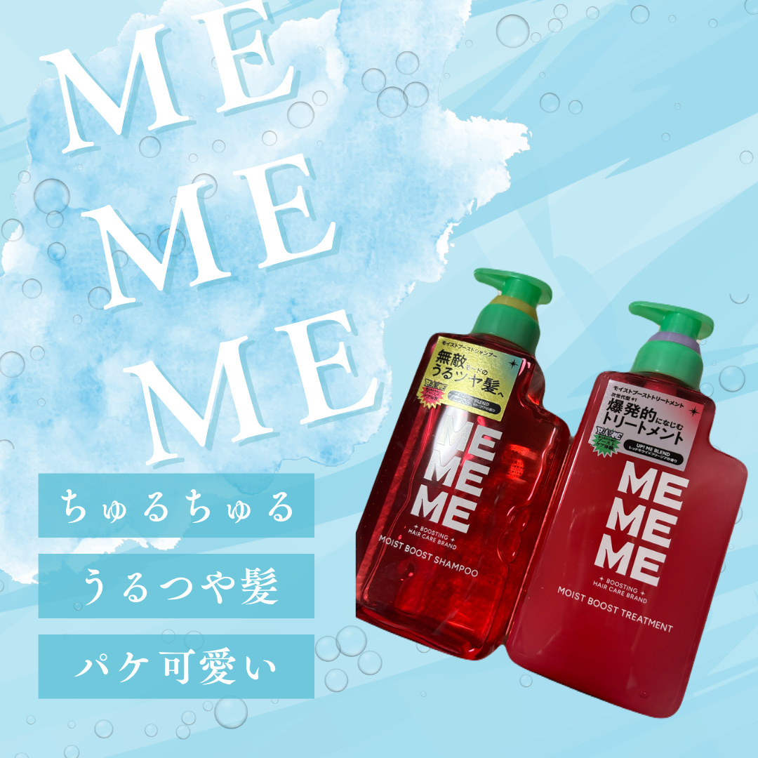 【使った商品】MEMEMEモイストブーストシャンプー/モイストブーストトリートメント【商品の特徴】ヘアカラーやアイロンをしていても、毛先までぷるんと弾む無敵モードのうるツヤ髪へ【使用感、テクスチャ】シャンプーはとろっとしていて、トリートメント...