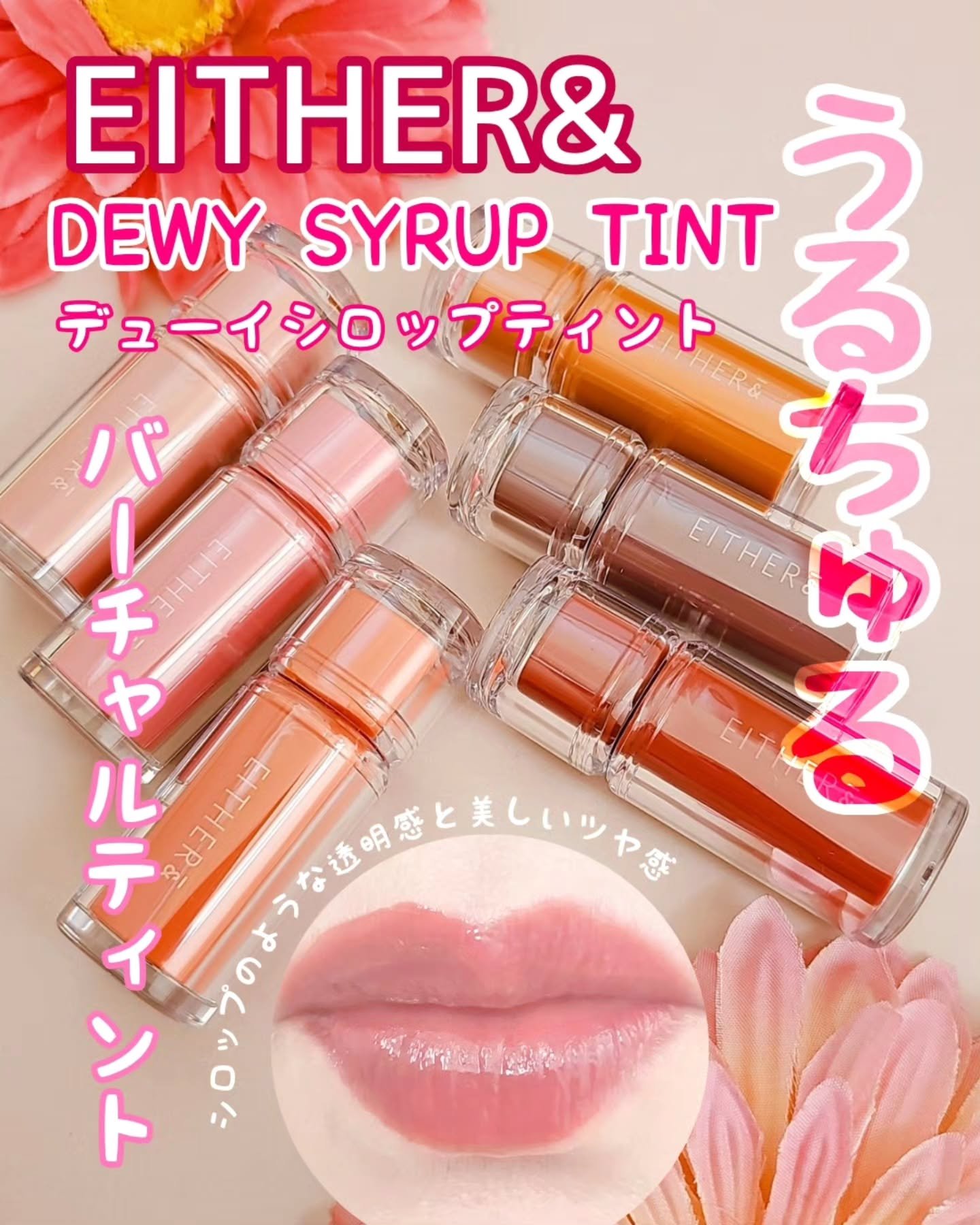 EITHER&(イーザーアンド)DEWYSYRUPTINT(デューイシロップティント)ナチュラルメイクにも使いやすい飲み会リップメガ割期間中なら定価:1,650円(税込)→メガ割:1,206円(税込)27%OFF※さらにミニティントがランダム...