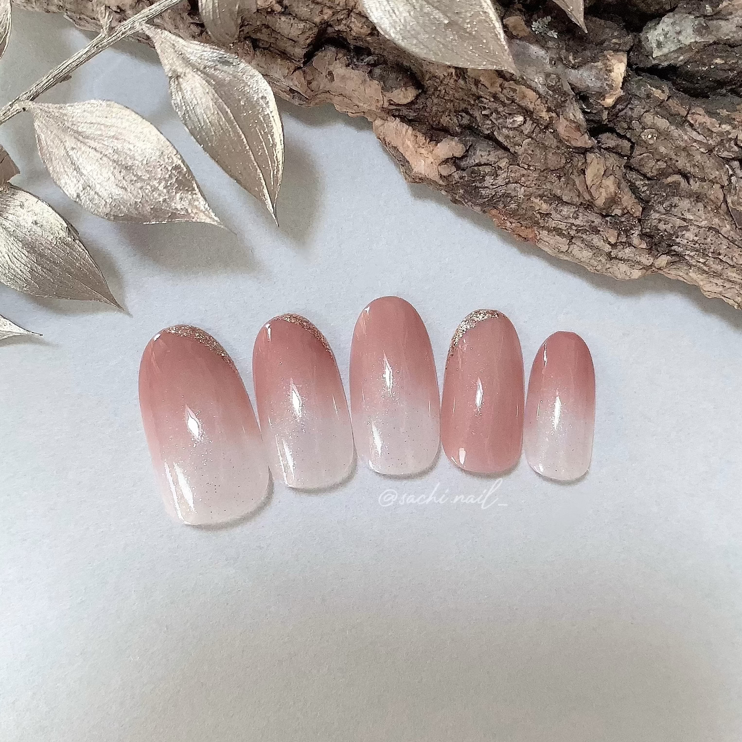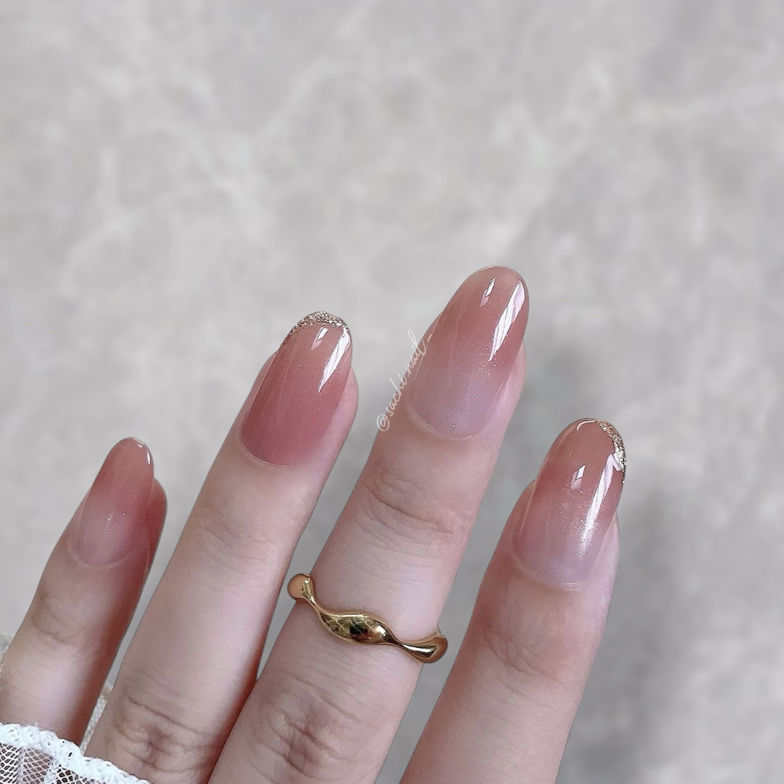 ワンカラーでも指ごとに色を変えるだけでオシャレに見えます💕 画像のようにゴールドラインとストーンを少し足すだけで華やかさがアップ🥰 何度かご紹介したことのあるスポンジで作るグラデーションです✨ スポンジを使うことで境目が綺麗に馴染んでくれます💕 アルミホイルの上でブラウンとトップコートを1:1くらいで混ぜたものを、トップコートのハケに取って3箇所に塗るだけ👌 事前に混ぜたものを塗ることで、爪の上でぼかすより簡単に出来ます💕 ベースカラーが乾く前に点置きしてぼかすことで綺麗にぼかせます✨ スピードが大事なので、使うポリッシュのキャップは全て開けておきましょう😊 天然石のラインはガタガタの方がより天然石っぽく見えるので、ラインを描くのが苦手な方でも大丈夫🙆♀️ 難しそうに見えて、やってみると意外と簡単に出来ます♡