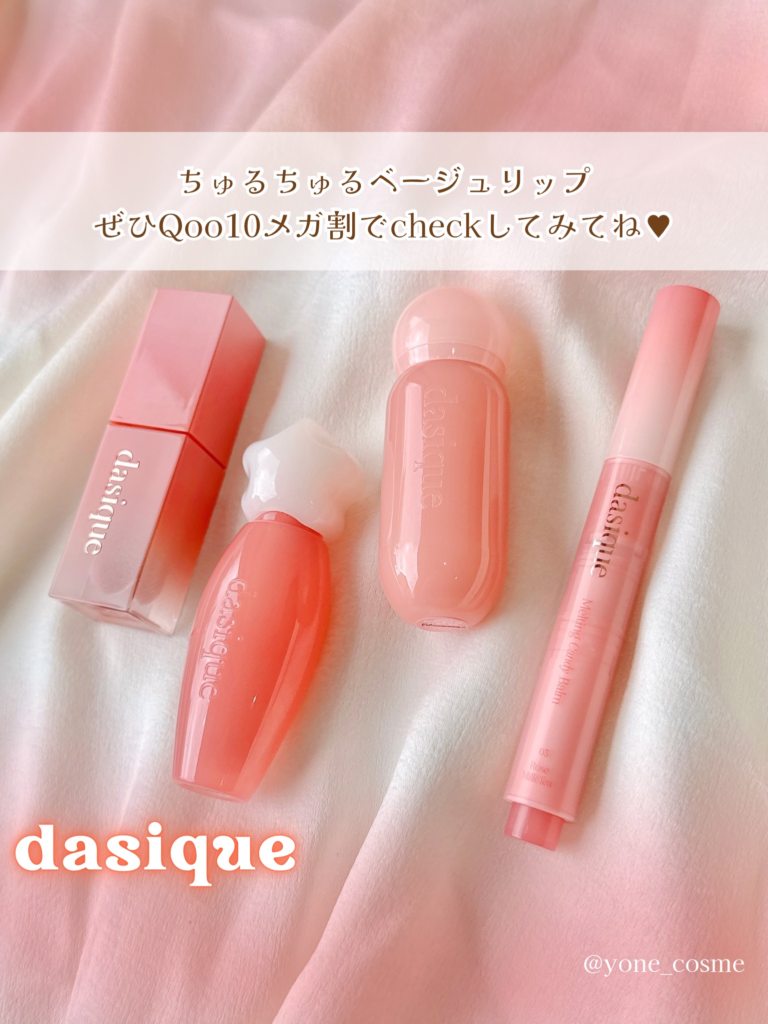 デイジークのティントがほんっっっとうにかわいい💝! 1stイエベ秋・2stイエベ春の私、気が付けば秋系カラーのリップばかり... さらさらしたテクスチャーなのだけど水分膜コーティングでうるちゅるぷるな質感が出てかわいい✨ ミルキーニュアンスをかけるようなレイヤー使いをするのもおススメ🫧
