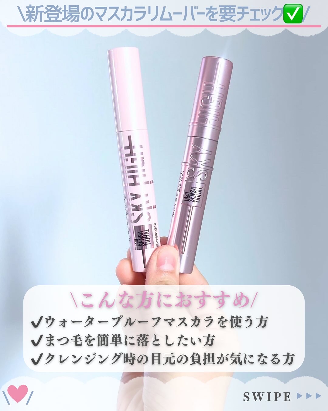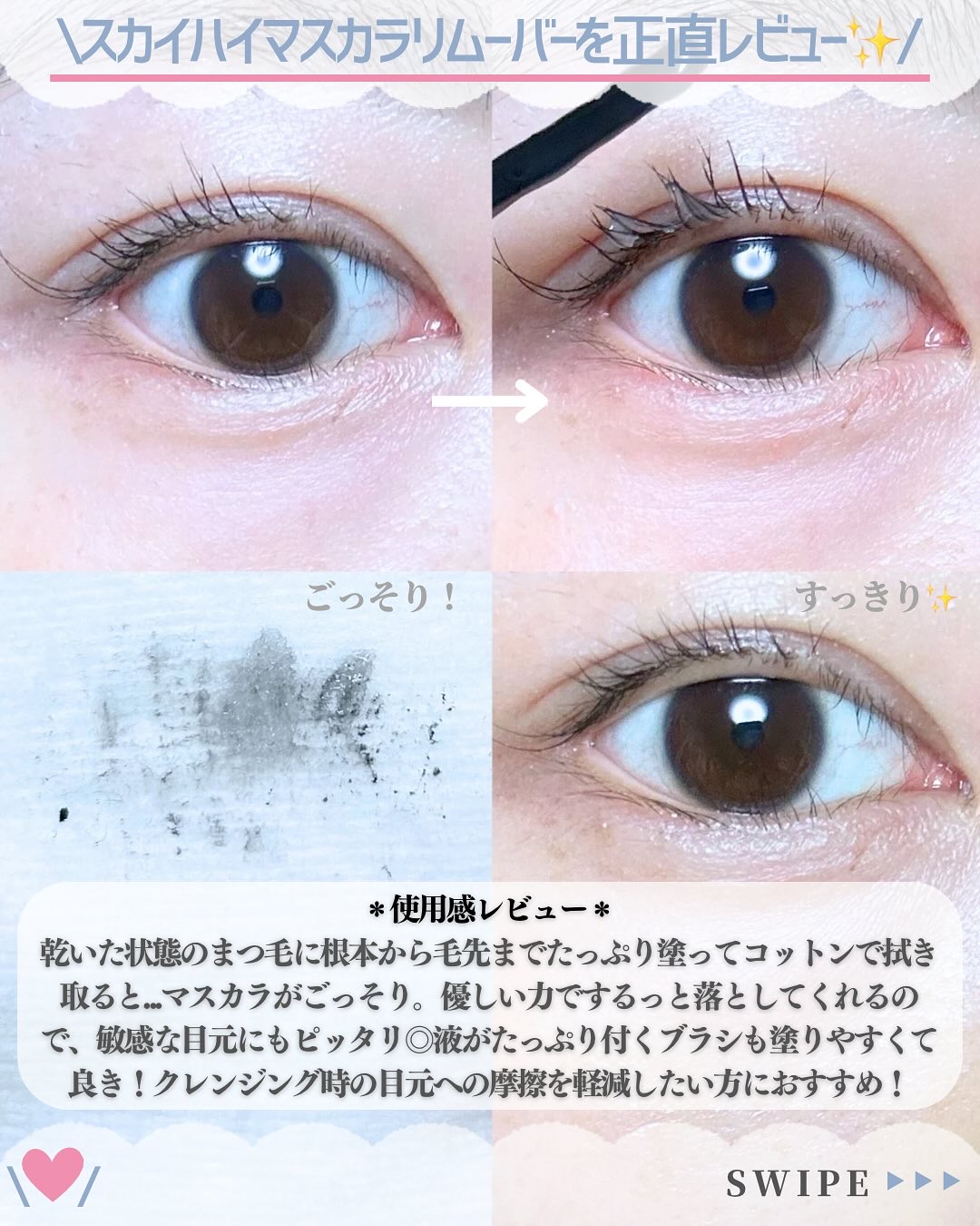 【使った商品】メイベリン「スカイハイマスカラ」「スカイハイリムーバー」【商品の特徴】Point1♡大人気マスカラメイベリンスカイハイからリムーバーが新登場Point2♡ブラシ形状にこだわったリムーバーPoint3♡マスカラ液を瞬時に溶かす【使...