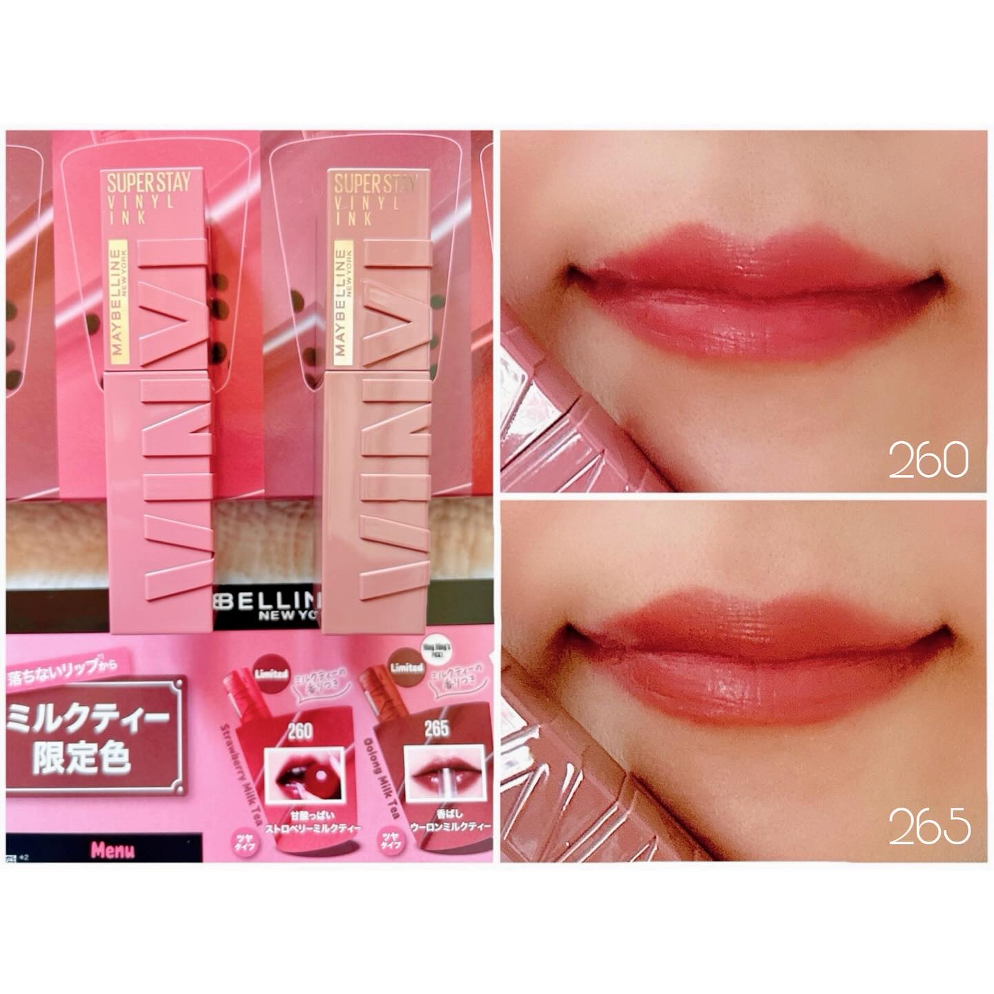 ▶︎MAYBELLINE\あの”落ちないリップ”に限定色が登場/✴︎SPステイヴィニルインク&マットインクメイベリンニューヨークのアイコンリップに、秋冬限定色(260甘酸っぱいストロベリーミルクティー、265香ばしウーロンミルクティー)が仲間...