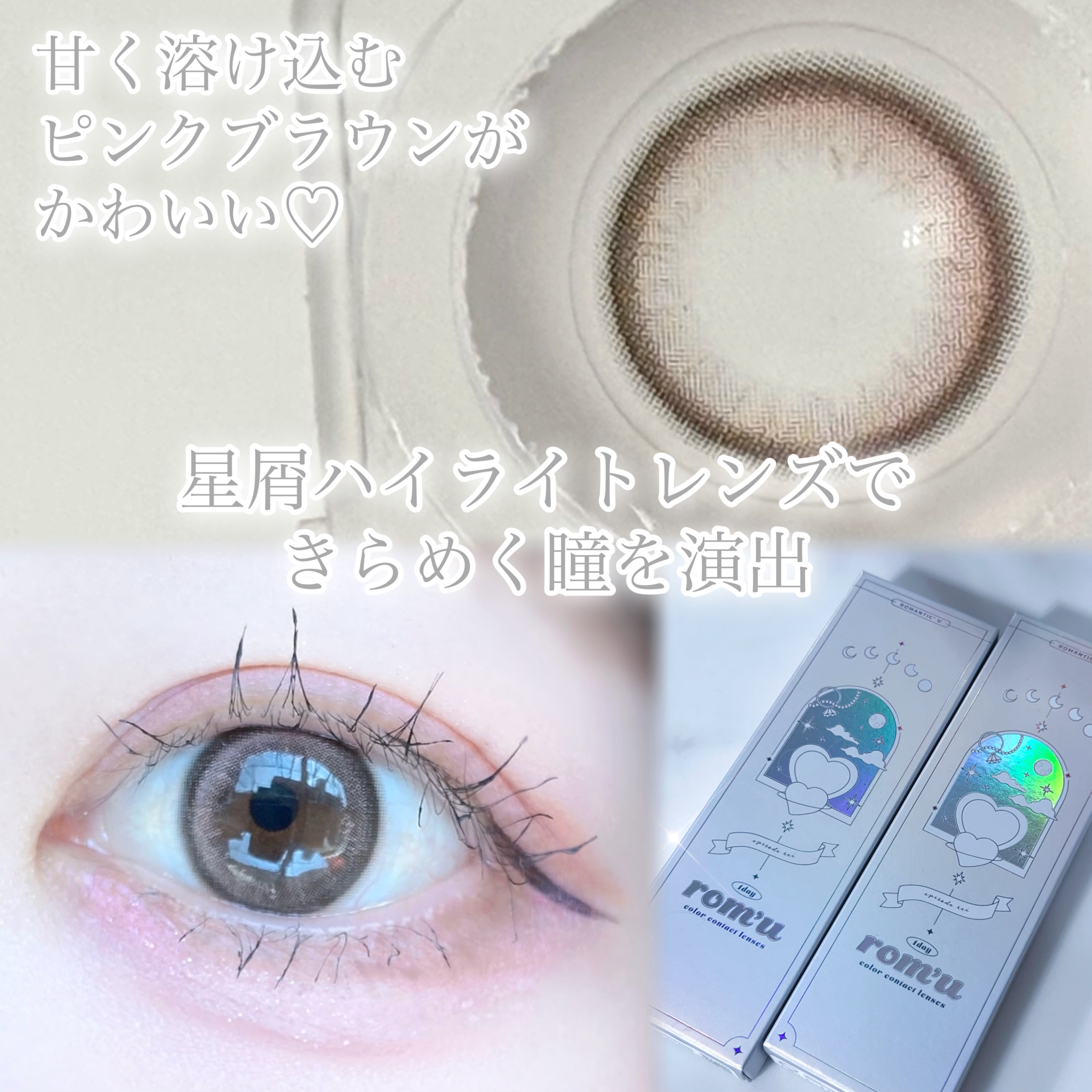 ほんのりピンクでとてもかわいいです‼︎ 意外とナチュラルですっ ブラウンピンクって感じの発色。🤎💖 私は細縁カラコンが好きなので、細縁ピンクカラコン出ないかなぁ~と思っています🙄
