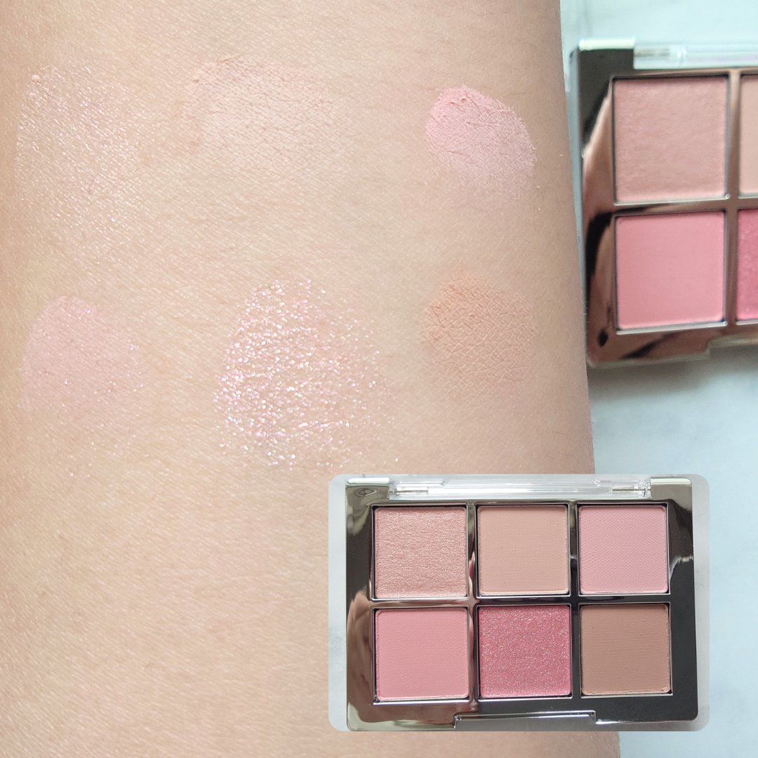 クールインソープは、いちごミルクのような甘くて柔らかい色合いのブルベ向けクールパレット。 01の繊細なホワイトピンクのグリッターが大好きで、下瞼目頭側に入れるとキラっとして可愛かったです。 ブラシよりも指やチップの方がガッツリつくので、濃いカラーを楽しみたいときとツールを使い分けてもいいかなと思います。