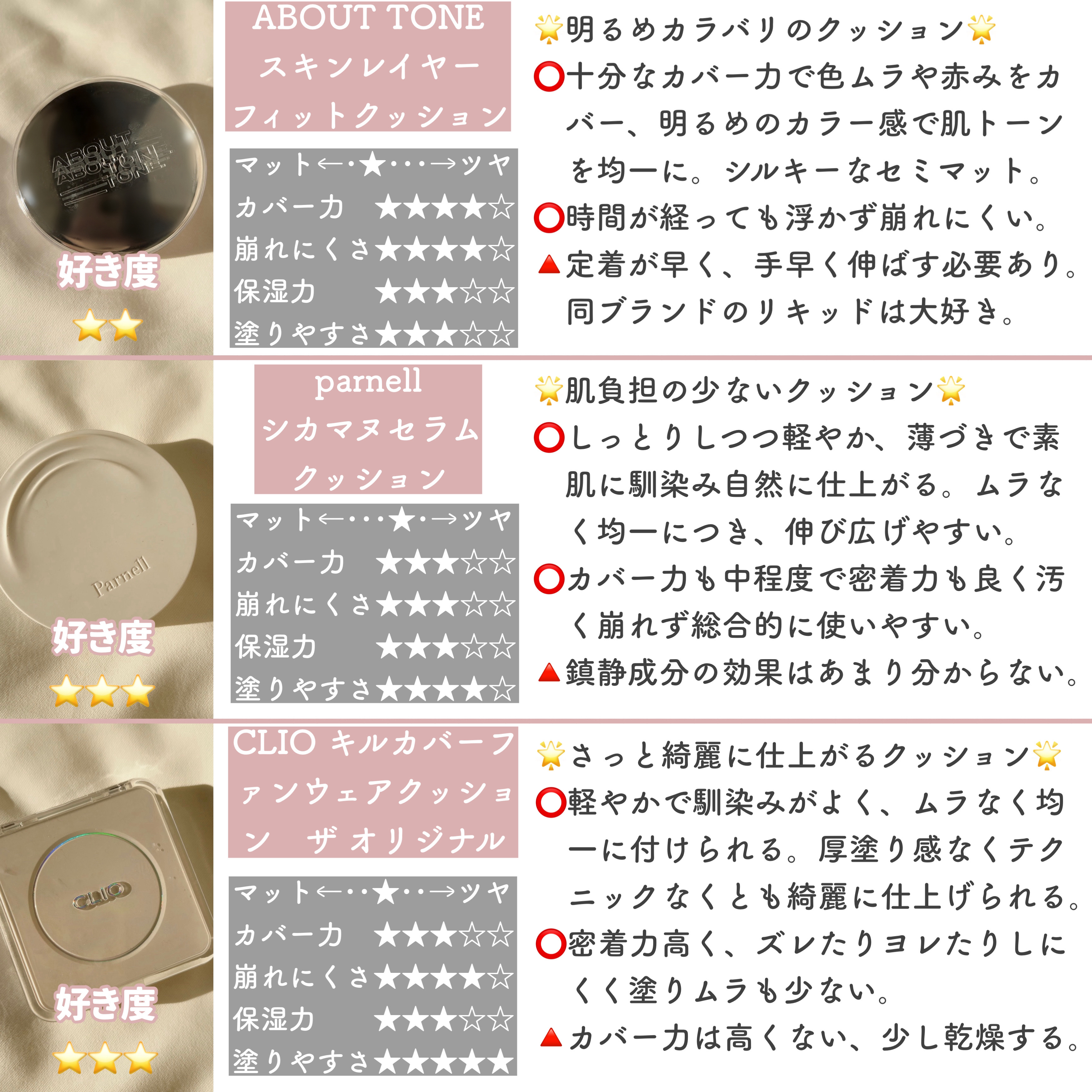 【保存推奨❤️🔥メガ割前必見!コスメオタクが人気の韓国クッションファンデを徹底比較♡】ついに11/16〜年内最後のメガ割が始まりましたね!ということで、韓国コスメの人気ブランドクッションファンデーションを徹底比較していこうと思います📝お買い...