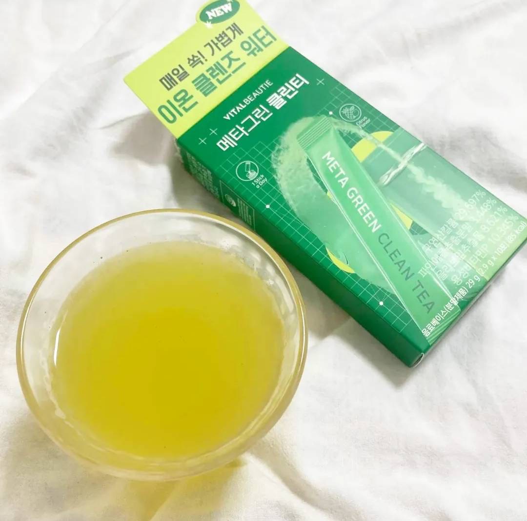 .バイタルビューティーメタグリーンクリーンティー🌿毎日手軽にスッキリ✨1日一杯、お水やお湯にサッと溶かすだけ。甘さのあるレモン風味でレモネードのような味🍋🫖スッキリと美味しくてゴクゴク飲んじゃう😋食べすぎた日の夜やなんか体が重いなっていう日の...