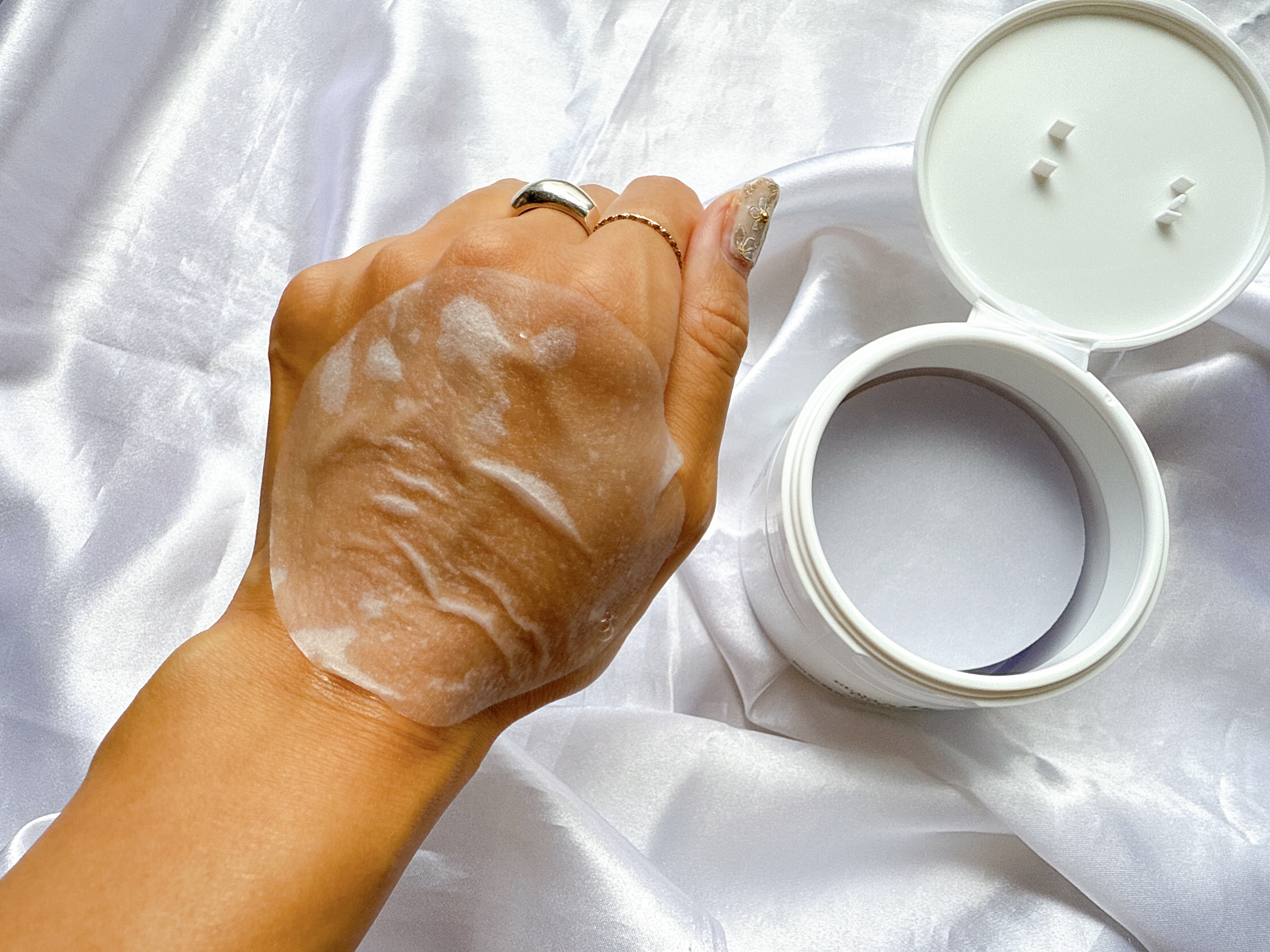 パウダーが含まれているこのシートを肌になじむようにしっかり押し当てるとふんわりぼかし※パウダーが付いてくれます🩵 簡単にメイク直しが出来るってとっても便利だし私の救世主的な存在です🦸♀️✨