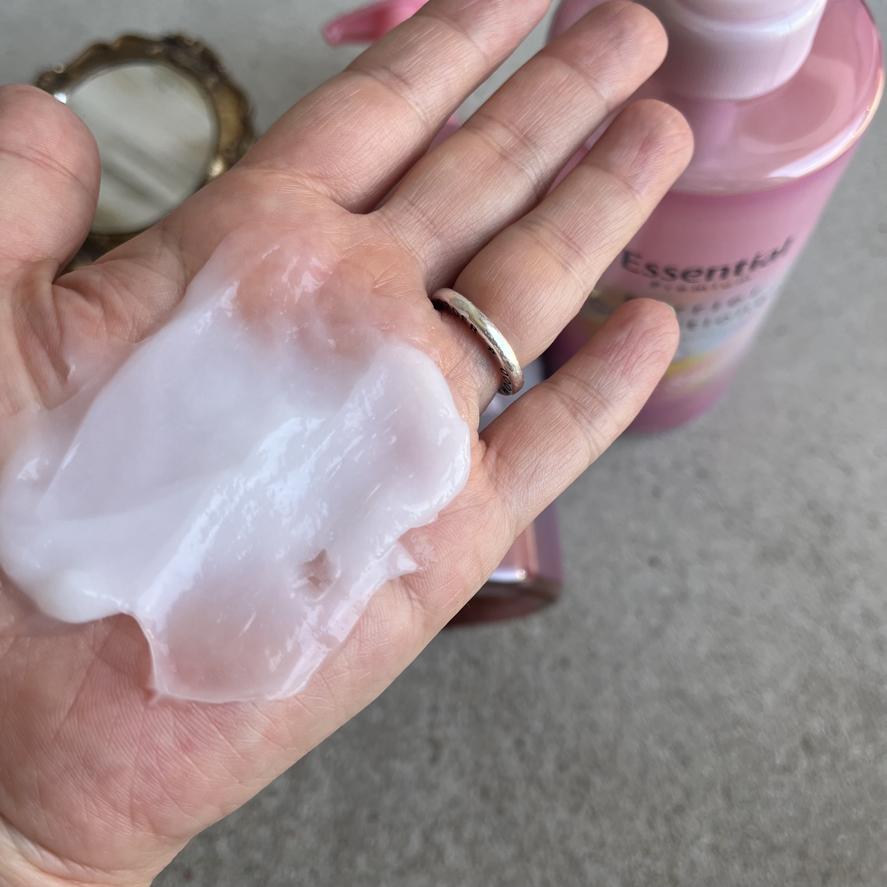 エッセンシャルプレミアムバリアシャンプー・コンディショナーシルキー&スムース〈説明〉・シャンプー・コンディショナー・450ml(両方とも)〈感想〉ホワイトピーチ&ムスクの香りは良い匂いで良かったです。シャンプーの洗浄力には私的には満足しました...