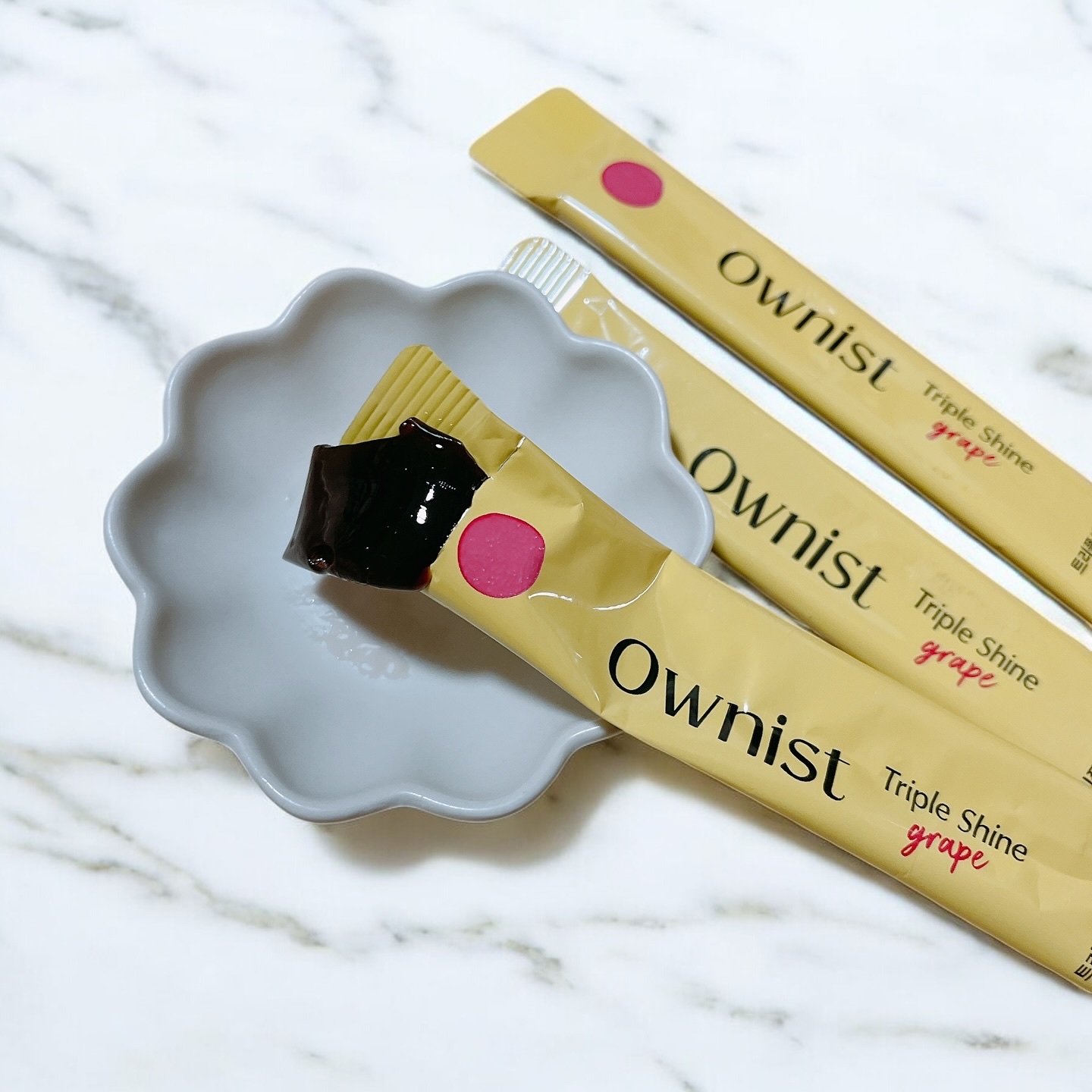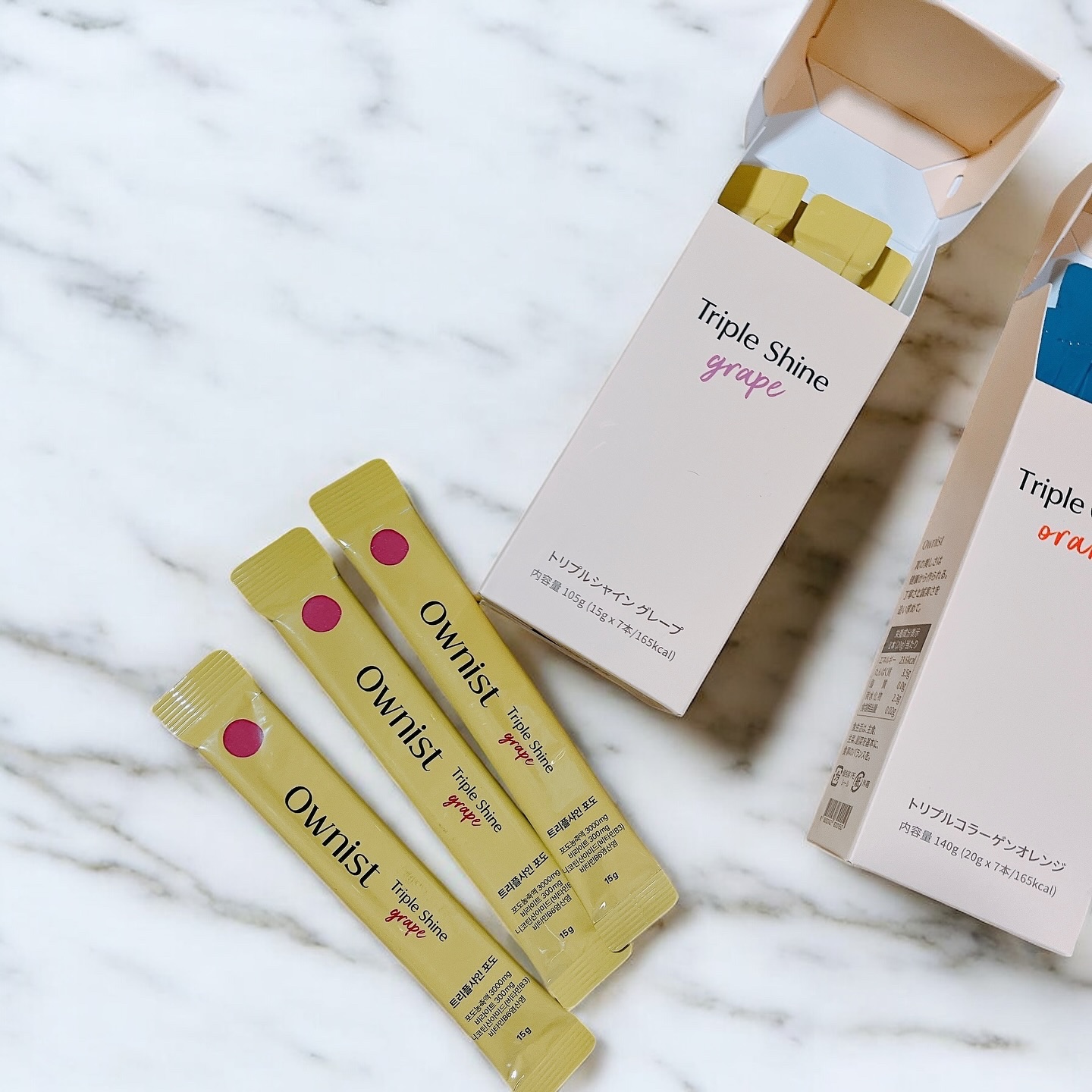 “飲む”と“食べる”で楽しむインナーケア✨韓国発インナーケアブランド【Ownist(オニスト)】《トリプルコラーゲンオレンジ》《トリプルシャイングレープ》をお試ししましたよ~🍊🍇どちらもスティックの個包装タイプで、コンパクトだから外出先でもサ...