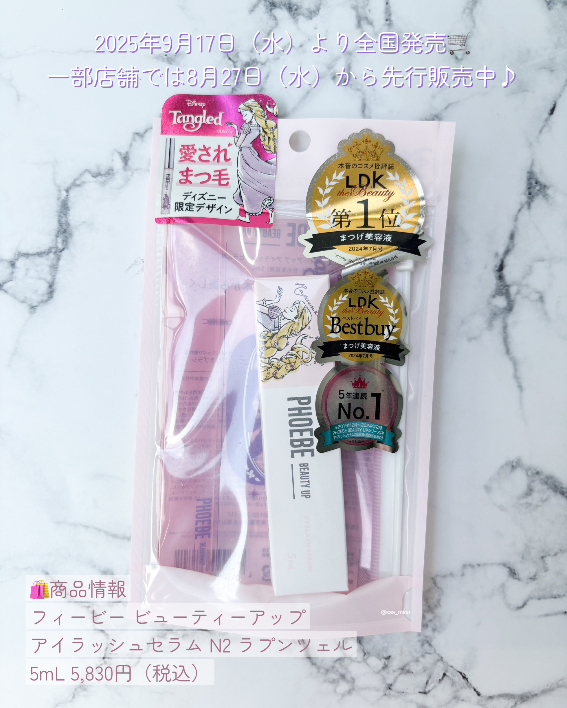 💜2025年9月17日数量限定発売フィービービューティーアップアイラッシュセラムN2数量限定ラプンツェルデザイン🛶ディズニー限定デザイン第2弾のまつ毛美容液👀ラプンツェルとユージーンのシルエットがデザインされた大人かわいいポーチがついてるよ🥹...