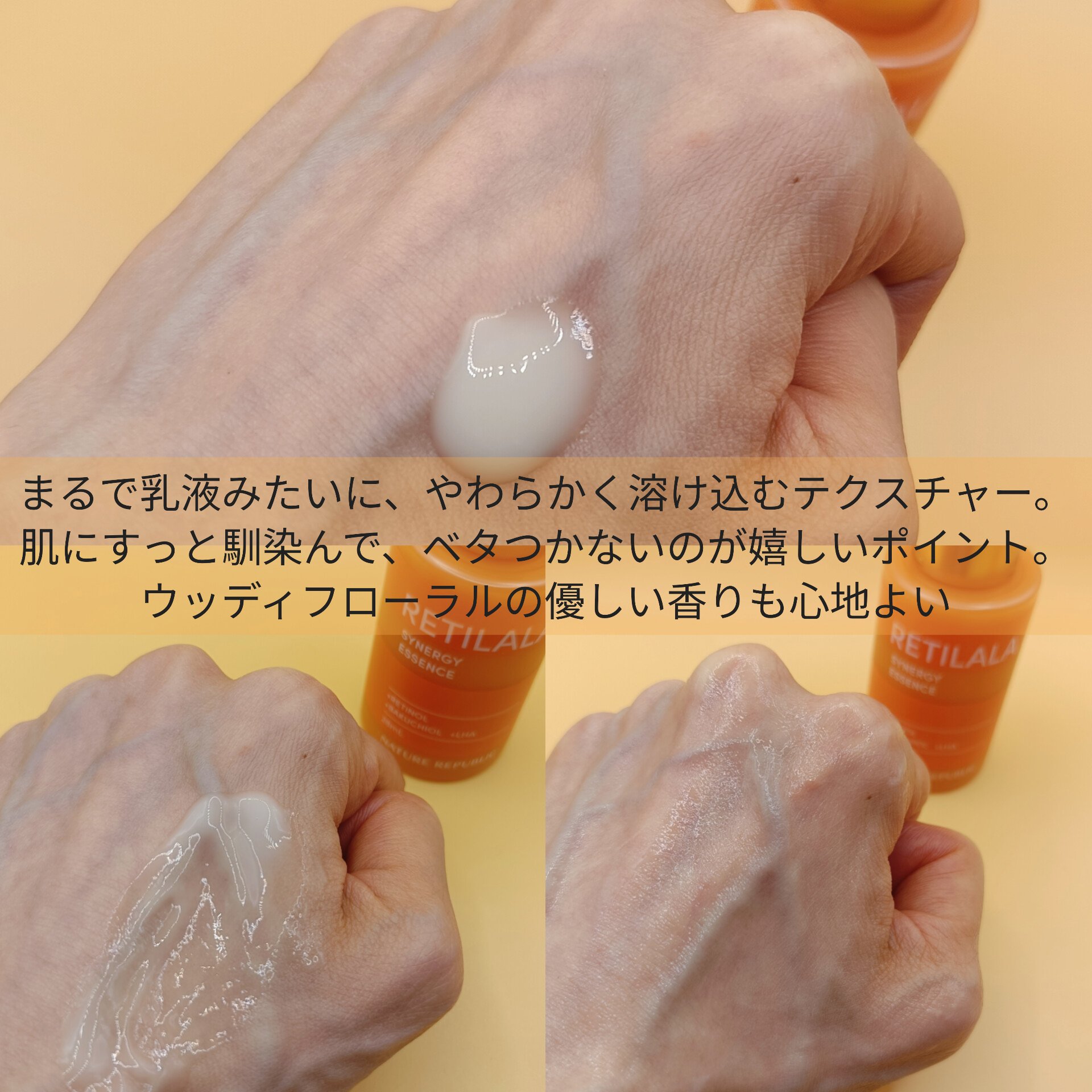 - <角質ケア*1>と<保湿>のWケアができるレチララシリーズに 洗顔後すぐに塗る「導入ピール美容液」が新登場! 肌を健やかに保つ成分として知られるレチノールと、“次世代レチノール”ともいわれるバクチオールを配合した美容液を開発しました。 さらに“角質ケア*1”として韓国での肌管理*2にも使われるLHAも配合。 角質ケア*1と保湿のWアプローチでまるでゆでたまごのような毛穴の目立ちにくい、なめらかで透明感*3のある素肌へと導きます。 ファーストステップ使い*4でスキンケアの浸透*5をサポート。 毛穴の目立ちにくい、なめらかで透明感*3のある素肌へ レチノール、バクチオール LHA/カプリロイルサリチル酸(全て整肌成分) 同シリーズのシートマスクと併用する場合は、洗顔後にシートマスクをお使いいただき、化粧水、本品、乳液、もしくはクリーム等で肌を整えます。 *1古い角質をやわらげなめらかな肌に整えること *2うるおいケアのこと *3うるおいを与えることによる肌印象のこと *4洗顔後の肌にお使いいただけます *5角質層まで 先行発売日:2025年8月30日(土)ロフト、プラザにて先行発売 レチノール、バクチオール、LHA/カプリロイルサリチル酸、グルタチオン、ナイアシンアミド、グリチルリチン酸2K、6つのペプチド/アセチルヘキサペプチド-8、トリペプチド-1銅、パルミトイルペンタペプチド-4、アセチルテトラペプチド-5、パルミトイルテトラペプチド-7、パルミトイルトリペプチド-1、セラミド/セラミドNP(全て整肌成分)