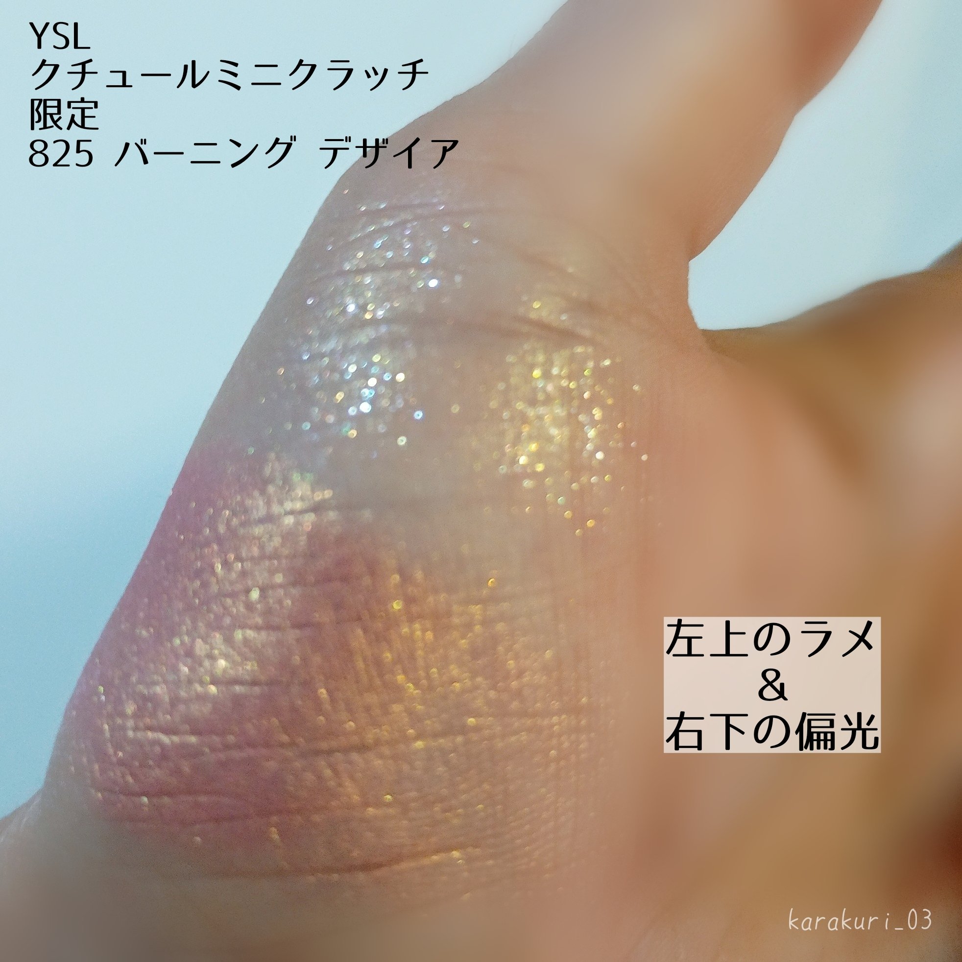 YSLのクチュールミニクラッチの限定!!ピンクのマーブル模様が可愛い!!普通のピンクパレットではなくて右下ゴールドの偏光ラメがポイントになるかんじ発色は全体的に淡め★825バーニングデザイアやわらかさに情熱を宿すスパークルピンク上段の肌にとけ...