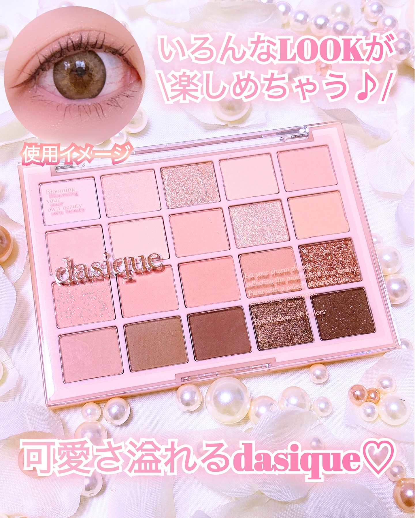 - デイジーク初の20色シャドウパレット。パーソナルカラーに合わせて選べる。 マット、シーマー、グリッターなど様々なテクスチャーが勢揃い その日の気分やファッションに合わせて多様なメイクが可能。 これひとつで様々な色とラメを組み合わせたグラデーションが楽しめます。