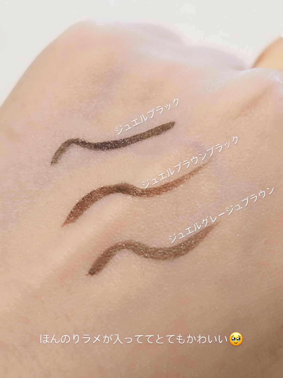 - <ジュエルブラック> 水、BG、(スチレン/アクリレーツ)コポリマー、1,2-ヘキサンジオール、ポリアスパラギン酸Na、ホウケイ酸(Ca/Al)、ヒアルロン酸Na、センブリエキス、カニナバラ果実エキス、カミツレ花エキス、アクリレーツコポリマー、エタノール、エチルヘキシルグリセリン、カプリリルグリコール、結晶セルロース、酸化スズ、水酸化Na、ステアリン酸PEG-45、ベントナイト、ペンチレングリコール、EDTA-2Na、デヒドロ酢酸Na、フェノキシエタノール、カーボンブラック、銀 <ジュエルブラウンブラック> 水、BG、(スチレン/アクリレーツ)コポリマーアンモニウム、1,2-ヘキサンジオール、ホウケイ酸(Ca/Al)、ヒアルロン酸Na、センブリエキス、カニナバラ果実エキス、カミツレ花エキス、アクリレーツコポリマー、アクリレーツコポリマーアンモニウム、エタノール、エチルヘキシルグリセリン、カプリリルグリコール、グリセリン、結晶セルロース、酸化スズ、シリカ、水酸化K、水酸化Na、ステアリン酸PEG-45、トコフェロール、ベントナイト、ペンチレングリコール、ユチャ種子油、フェノキシエタノール、カーボンブラック、銀、酸化鉄 <ジュエルグレージュブラック> 水、BG、アクリレーツコポリマー、1,2-ヘキサンジオール、シリカ、炭、ヒアルロン酸Na、センブリエキス、カニナバラ果実エキス、カミツレ花エキス、アクリレーツコポリマーアンモニウム、エタノール、エチルヘキシルグリセリン、カプリリルグリコール、グリセリン、結晶セルロース、酸化スズ、ジラウロイルグルタミン酸リシンNa、水酸化Al、水酸化K、ステアリン酸PEG-45、トコフェロール、ベントナイト、ペンチレングリコール、ホウケイ酸(Ca/Al)、ユチャ種子油、DPG、EDTA-2Na、フェノキシエタノール、銀、酸化チタン、酸化鉄