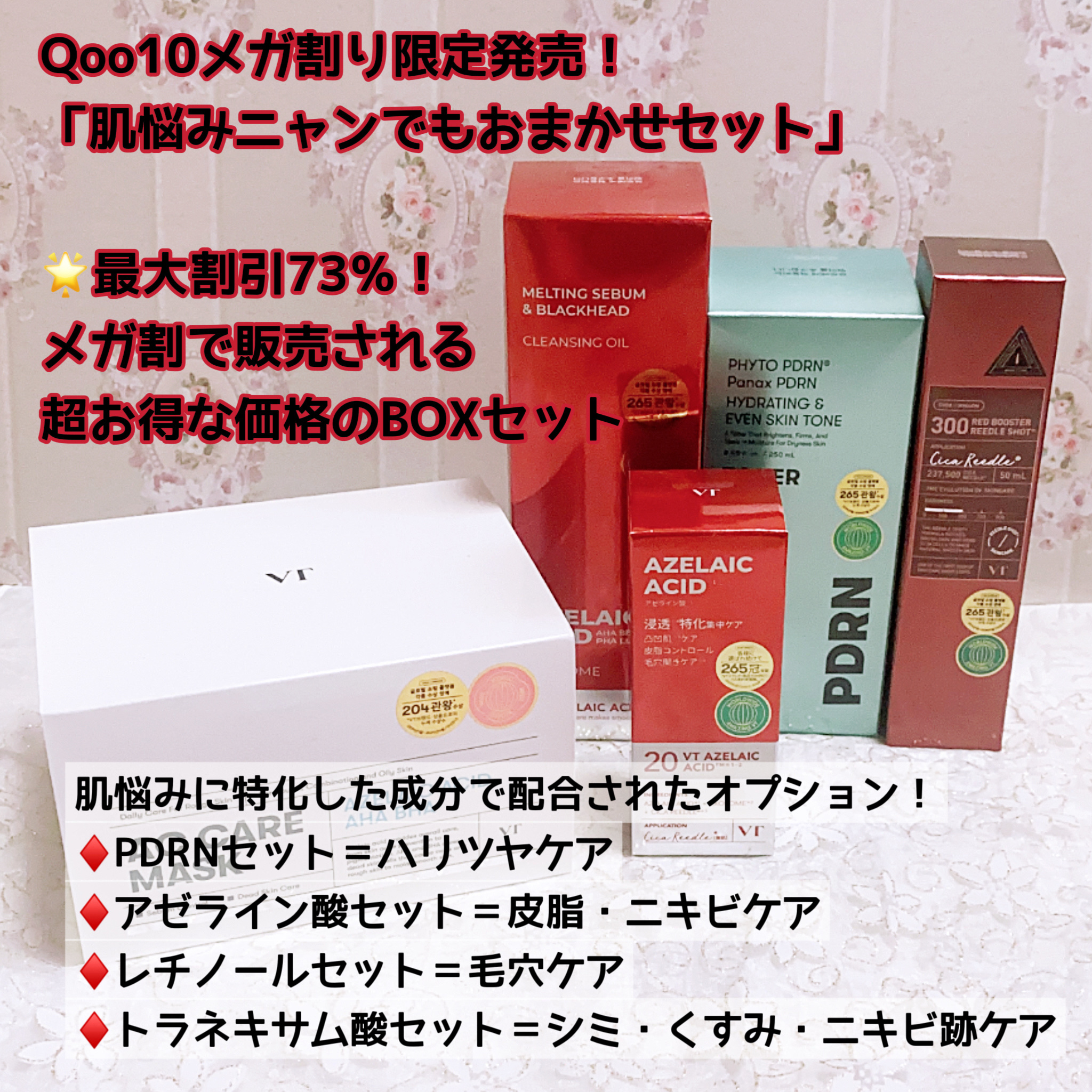 肌のゆらぎや毛穴悩みに特化したケアがぎゅっと詰まったセット❣️🌟アゼライン酸セット(アゼライン酸角質ゼロセット)通常価格:16,360円→メガ割4,900円(70%OFF)セット内容①アゼライン酸クレンジングオイル②PDRNトナー③レッドブー...