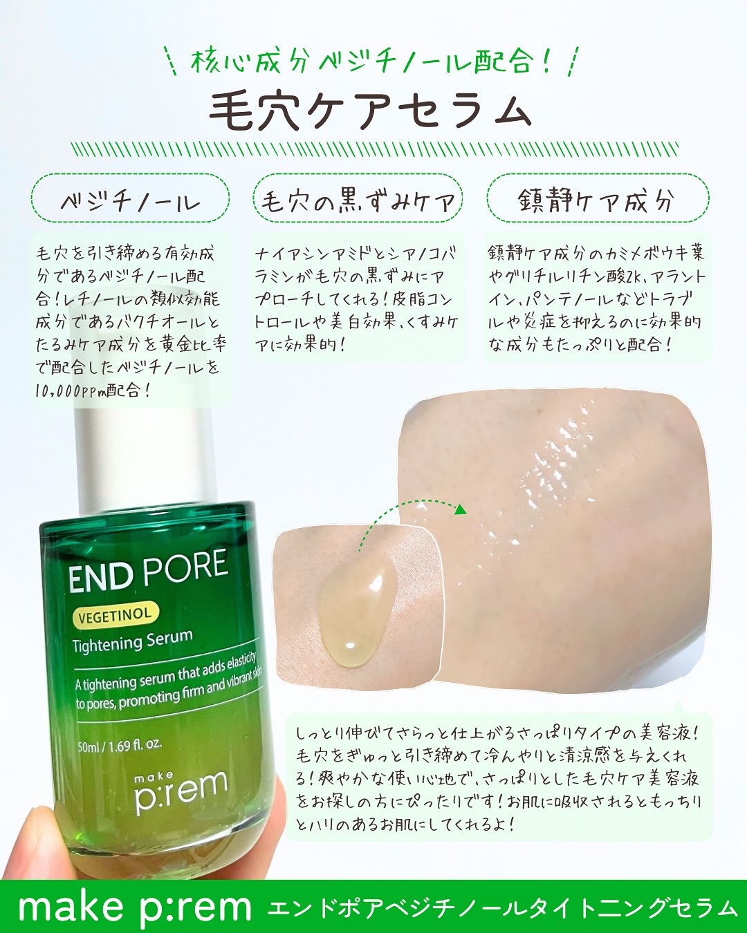 make prem エンドポアベジチノールタイト二ングセラム | 3,500円 |