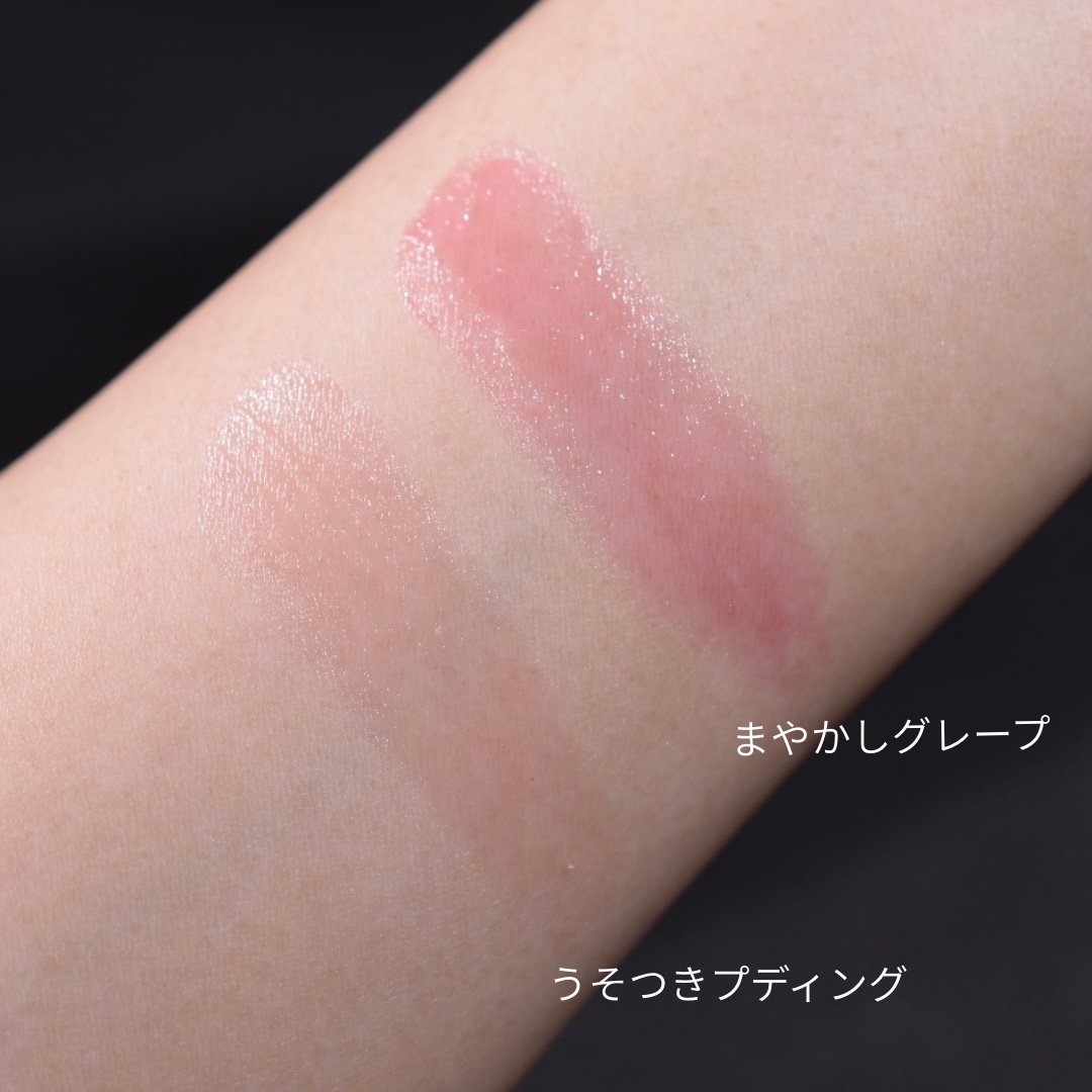 - <無色> リンゴ酸ジイソステアリル、水添ポリイソブテン、ヒドロキシアルキル(C16-18)ヒドロキシダイマージリノレイルエーテル、ヒドロキシステアリン酸エチルヘキシル、水添ポリデセン、合成ワックス、トリエチルヘキサノイン、ラウロイルグルタミン酸ジ(フィトステリル/オクチルドデシル)、グルコース、シリカ、温泉水、セラミドNG、セラミドNP、セラミドAP、モモ果汁、モモ葉エキス、モモ果実エキス、アストロカリウムムルムル種子脂、グリチルレチン酸ステアリル、トウミツ、酒粕エキス、キャンデリラロウ、キャンデリラロウエステルズ、ネオヘスペリジンジヒドロカルコン、トコフェロール、カルナウバロウ、BG、水、グリセリン、香料 <BC (ベリーショコラ)> リンゴ酸ジイソステアリル、水添ポリイソブテン、ビスジグリセリルポリアシルアジペート-2、ヒドロキシステアリン酸エチルヘキシル、水添ポリデセン、合成ワックス、トリエチルヘキサノイン、ラウロイルグルタミン酸ジ(フィトステリル/オクチルドデシル)、グルコース、シリカ、温泉水、セラミドNG、セラミドNP、セラミドAP、モモ果汁、モモ葉エキス、イチゴ種子エキス、アストロカリウムムルムル種子脂、グリチルレチン酸ステアリル、トウミツ、酒粕エキス、キャンデリラロウ、キャンデリラロウエステルズ、ネオヘスペリジンジヒドロカルコン、トコフェロール、カルナウバロウ、BG、水、硫酸Ca、クエン酸、クエン酸Na、香料、ラウロイルリシン、トリエトキシカプリリルシラン、水酸化Al、酸化チタン、酸化鉄、青1、黄4、黄5、赤202、赤223、橙201 <OG (オランジェット)> リンゴ酸ジイソステアリル、水添ポリイソブテン、ビスジグリセリルポリアシルアジペート-2、ヒドロキシステアリン酸エチルヘキシル、水添ポリデセン、合成ワックス、トリエチルヘキサノイン、ラウロイルグルタミン酸ジ(フィトステリル/オクチルドデシル)、グルコース、シリカ、温泉水、セラミドNG、セラミドNP、セラミドAP、モモ果汁、モモ葉エキス、マンダリンオレンジ果皮エキス、アストロカリウムムルムル種子脂、グリチルレチン酸ステアリル、トウミツ、酒粕エキス、キャンデリラロウ、キャンデリラロウエステルズ、ネオヘスペリジンジヒドロカルコン、トコフェロール、カルナウバロウ、BG、水、クエン酸、クエン酸Na、香料、ラウロイルリシン、水酸化Al、酸化チタン、酸化鉄、赤223