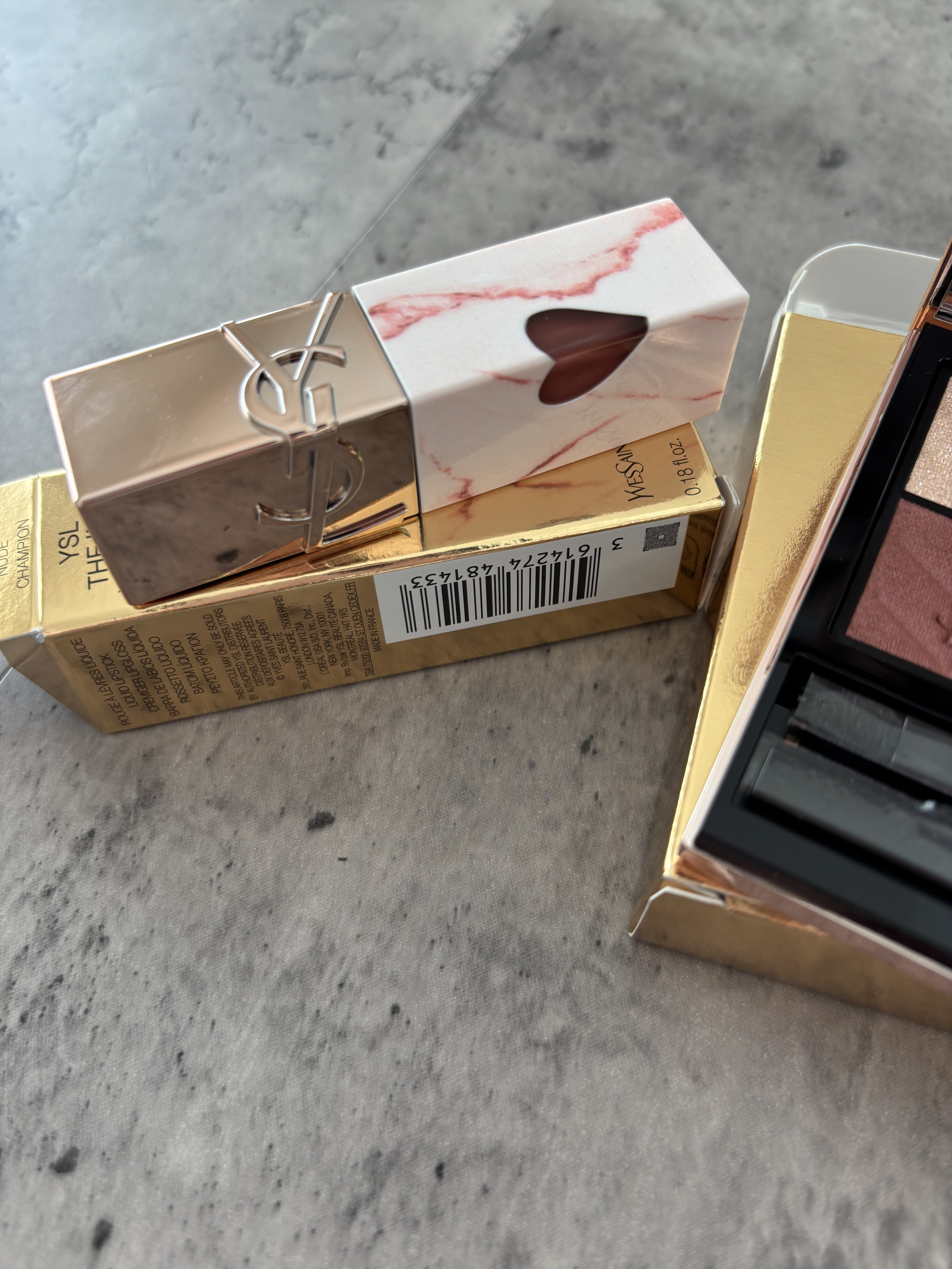 YVESSAINTLAURENTBEAUTEクチュールミニクラッチNo.825バーニングデザイア<コレクター>ミニクラッチの限定色大理石調のケースも可愛い♡右下の偏光ラメがとても綺麗で華やかな印象になるので、オフィスメイクでは調節が必要かも。...
