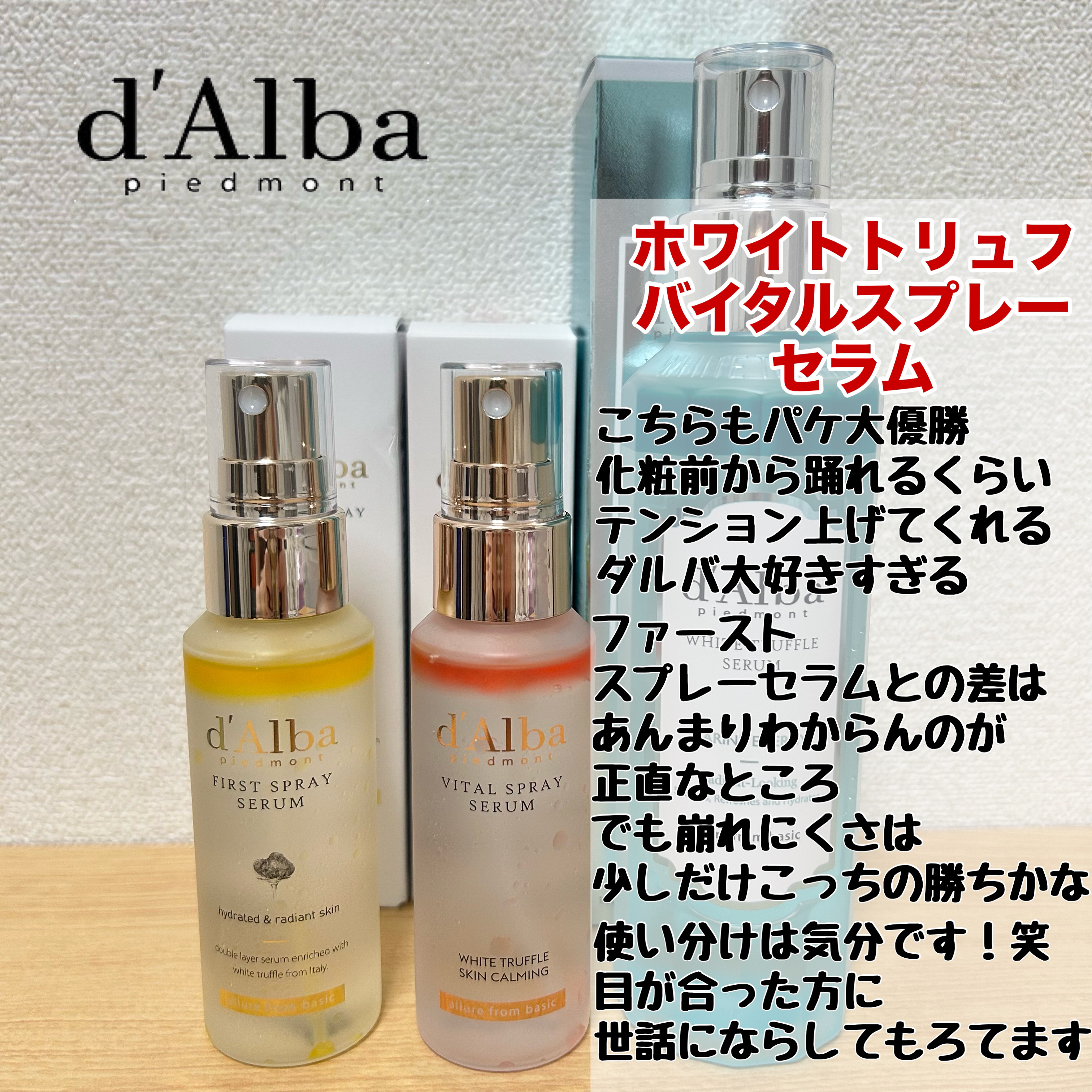 ダルバのミストって5種類もあるって知ってた?使い分け方まとめました✨✼••••✼••••✼ダルバビタトーニングアンチエイジングスプレーセラム8%ホワイトトリュフリフレッシュアクアセラムダルバホワイトトリュフファーストスプレーセラムダルバホワイ...